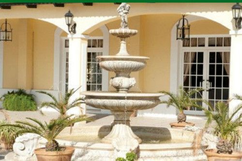 Ein wunderschöner Brunnen mit drei Etagen und zwei Figuren, bestehend aus witterungs- und frostbeständigem Weißstein. Die antike Form wird in aufwendiger Handarbeit im wunderschönen Andalusien hergestellt und kann auch Ihren Garten einen mediterranen Touch verleihen. Mit einer Pumpe, die das Wasser in einen geschlossenen Kreislauf immer wieder von unten zum oberen Auslauf pumpt und bei uns auch erhältlich ist, hat man eine wunderschöne Wasserfontäne.