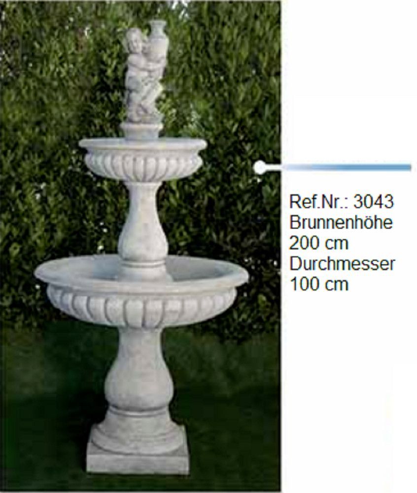 Brunnen aus Weißstein mit zwei Schalen und einer Zapfenfigur ( Ref. Nr. 3026 )
