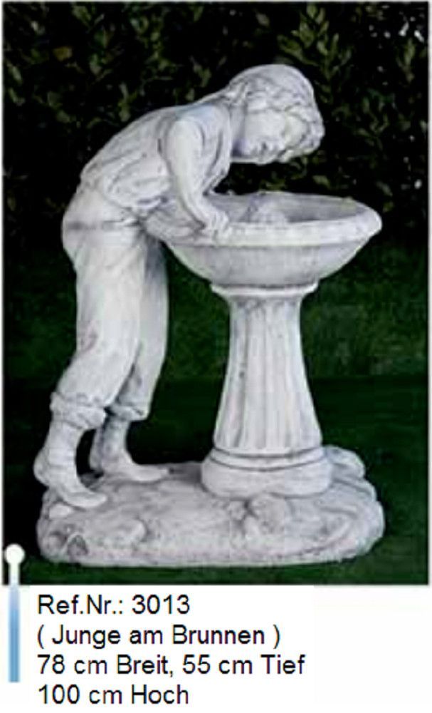 Brunnen aus Weißstein mit Schale und einer Knabenfigur als Wasserauslauf 3045