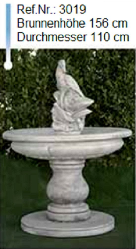 Brunnen aus Weißstein mit einer Schale und einer Figur ( Ref. Nr. 3019 )