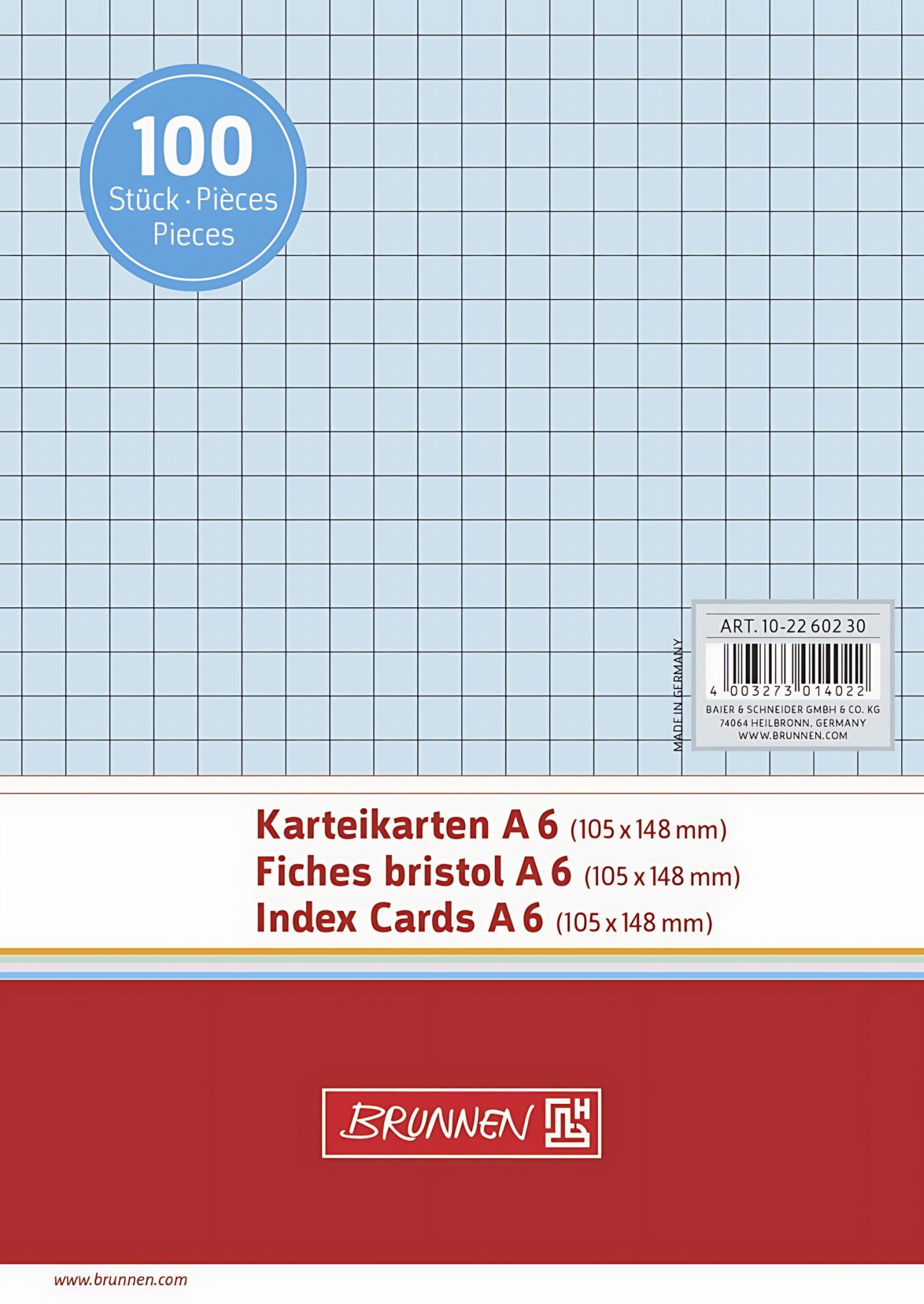 Brunnen Brunnen Karteikarte A6 kariert blau 100 Stück 102260230