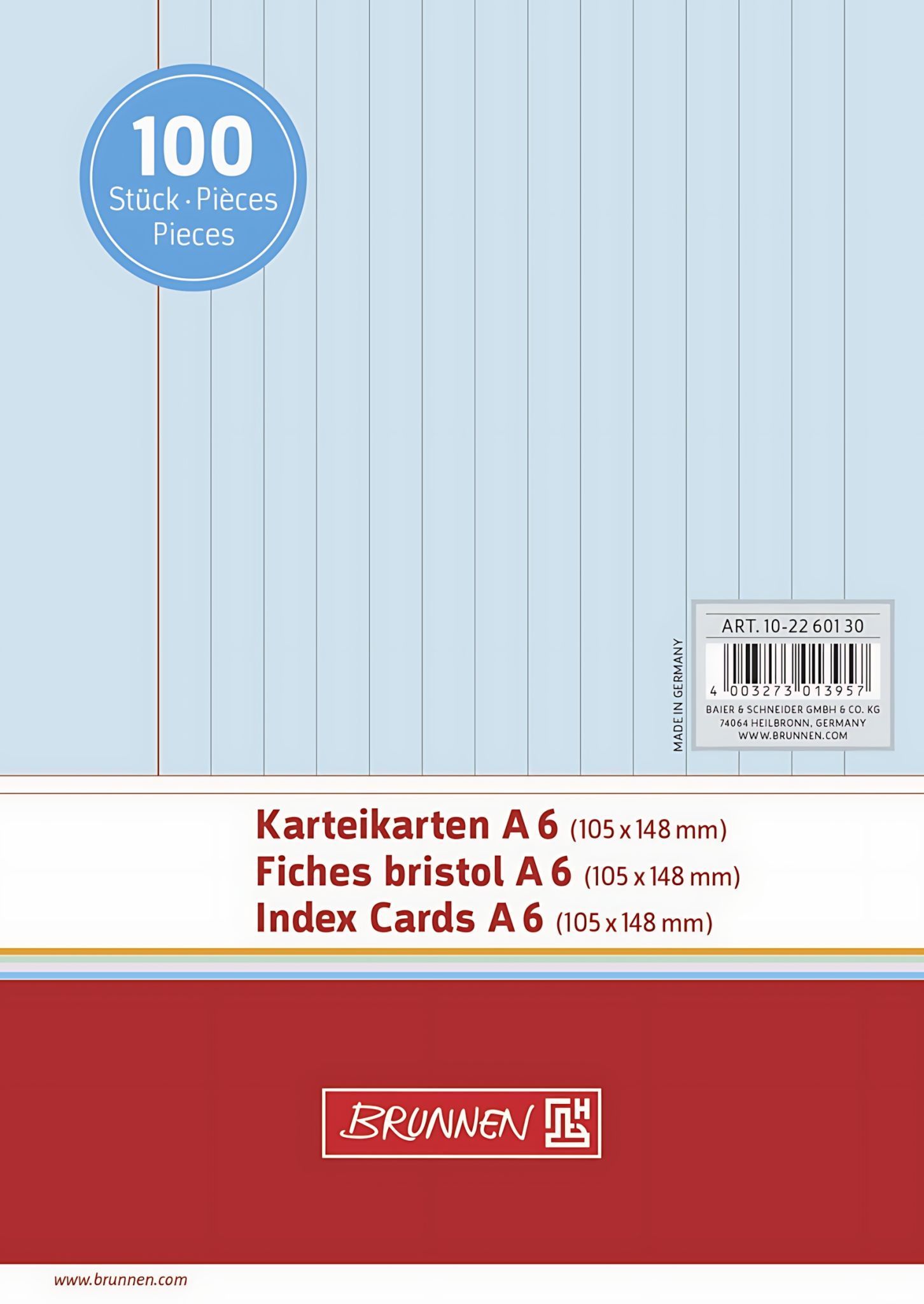 Brunnen Brunnen Karteikarte A6 liniert blau 100 Stück 102260130
