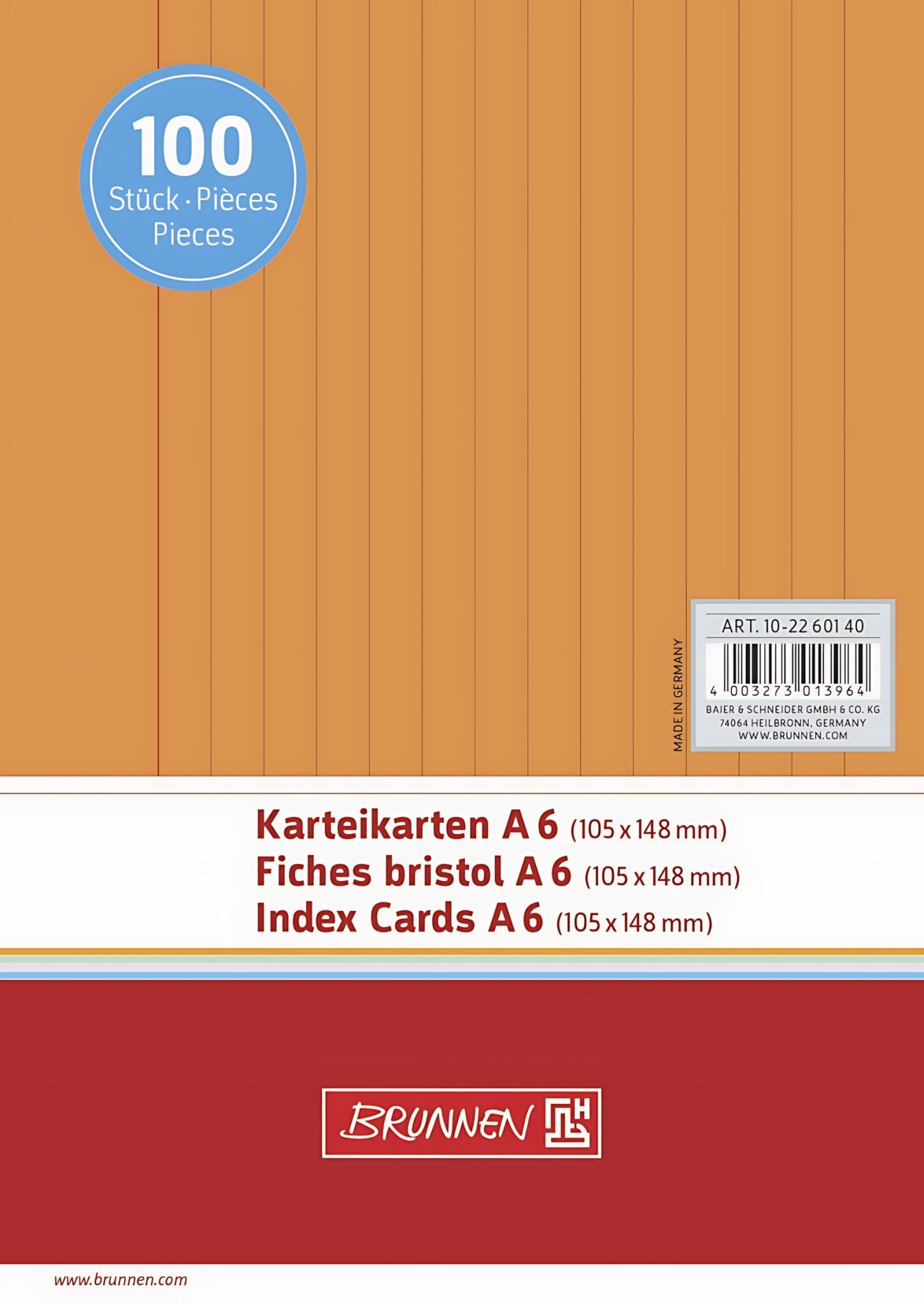 Brunnen Brunnen Karteikarte A6 liniert orange 100 Stück 102260140