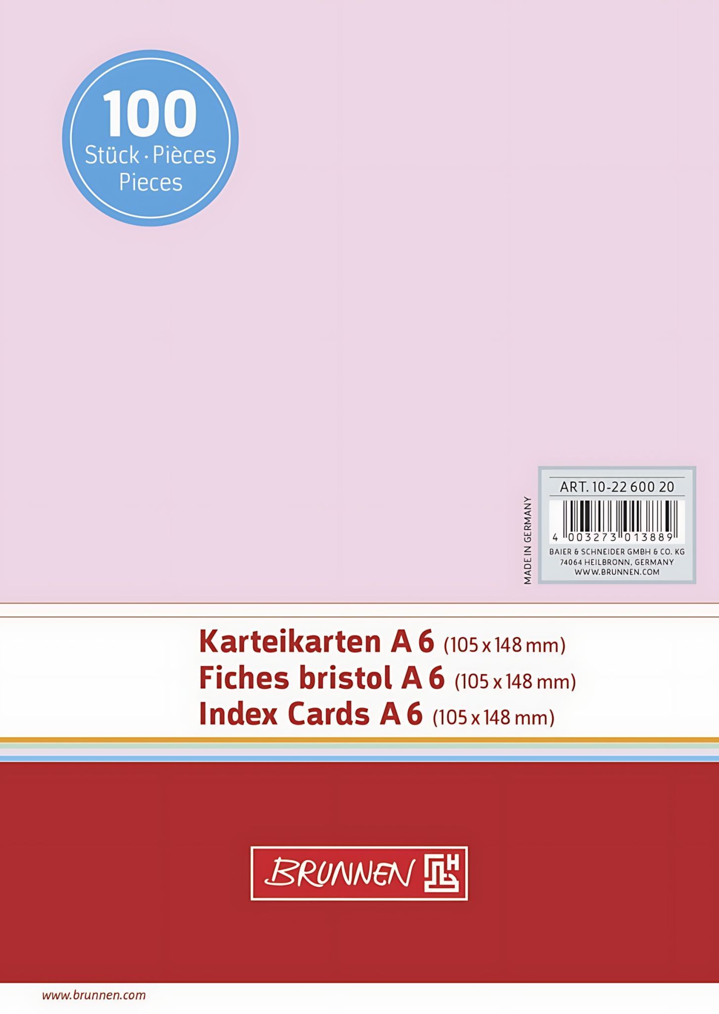 Brunnen Brunnen Karteikarte A6 unliniert/blanko rot 100 Stück 102260020