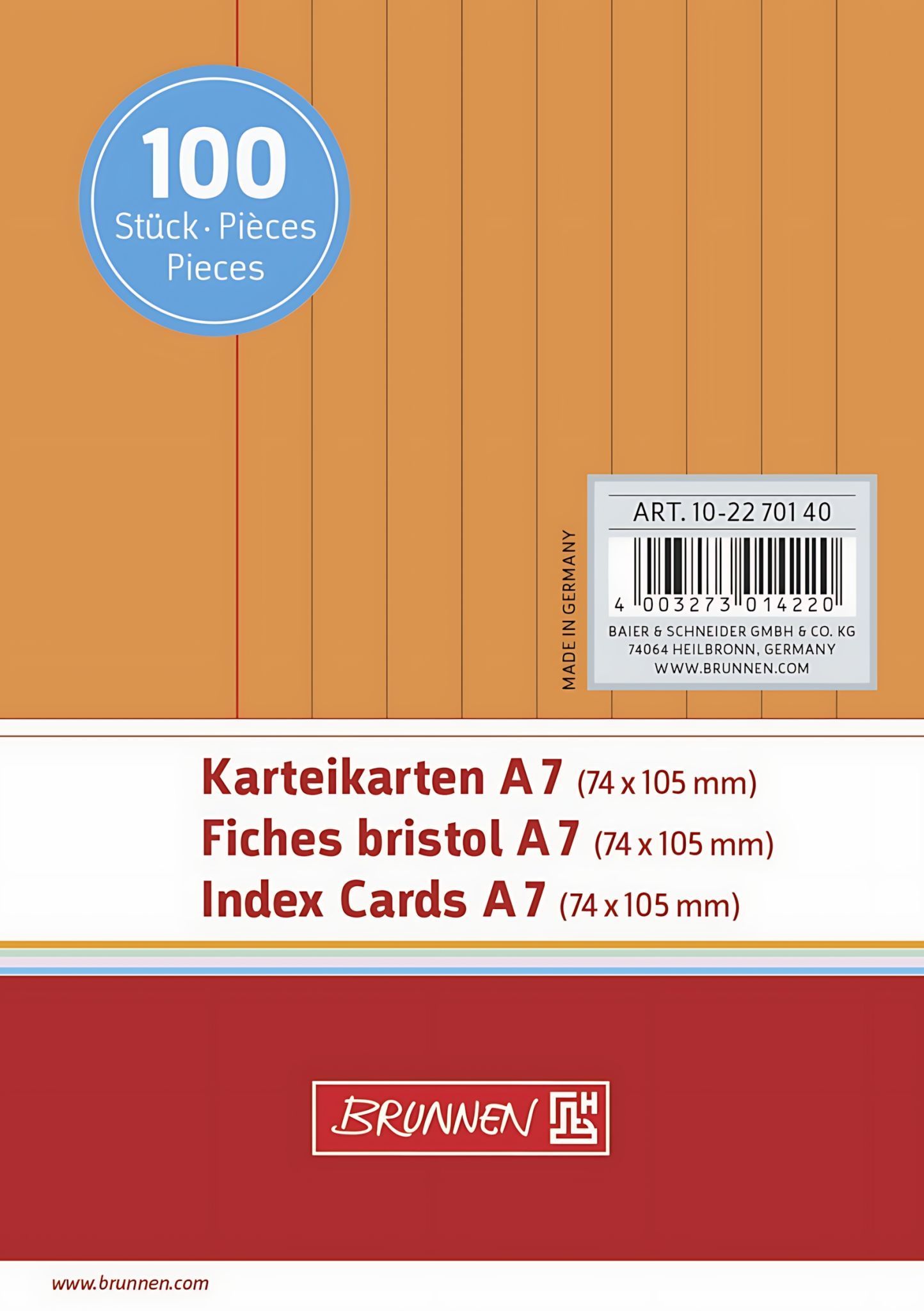 Brunnen Brunnen Karteikarte A7 liniert orange 100 Stück 102270140