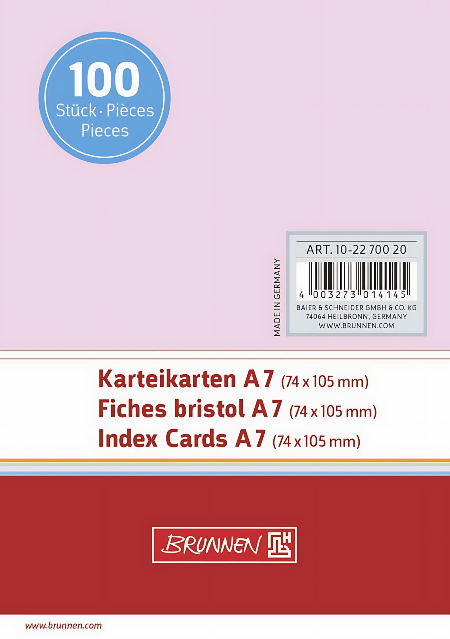 Brunnen Brunnen Karteikarte A7 unliniert/blanko rot 100 Stück 102270020