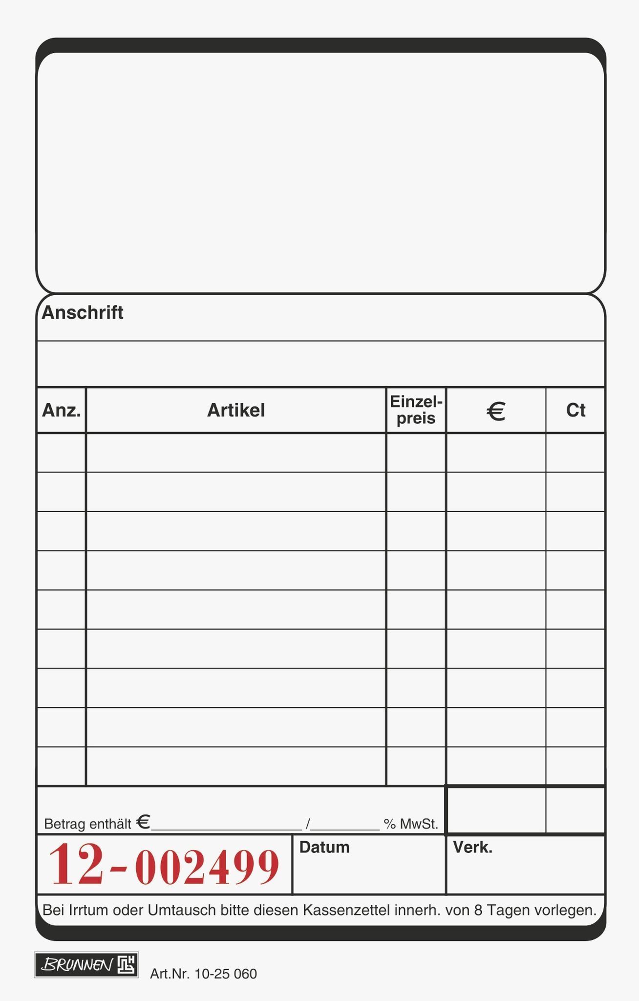 Brunnen Brunnen Kassenblock 2x50Bl 10er Pack