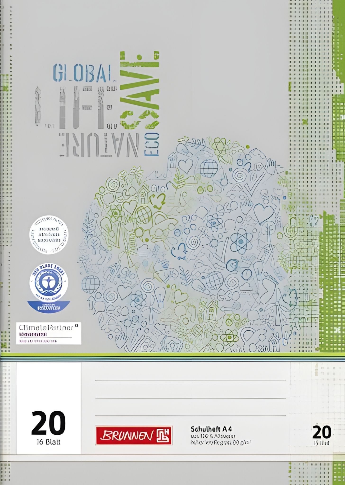 Brunnen Brunnen Schulheft A4 blanko Lineatur 20 16 Blatt Recyclingpapier