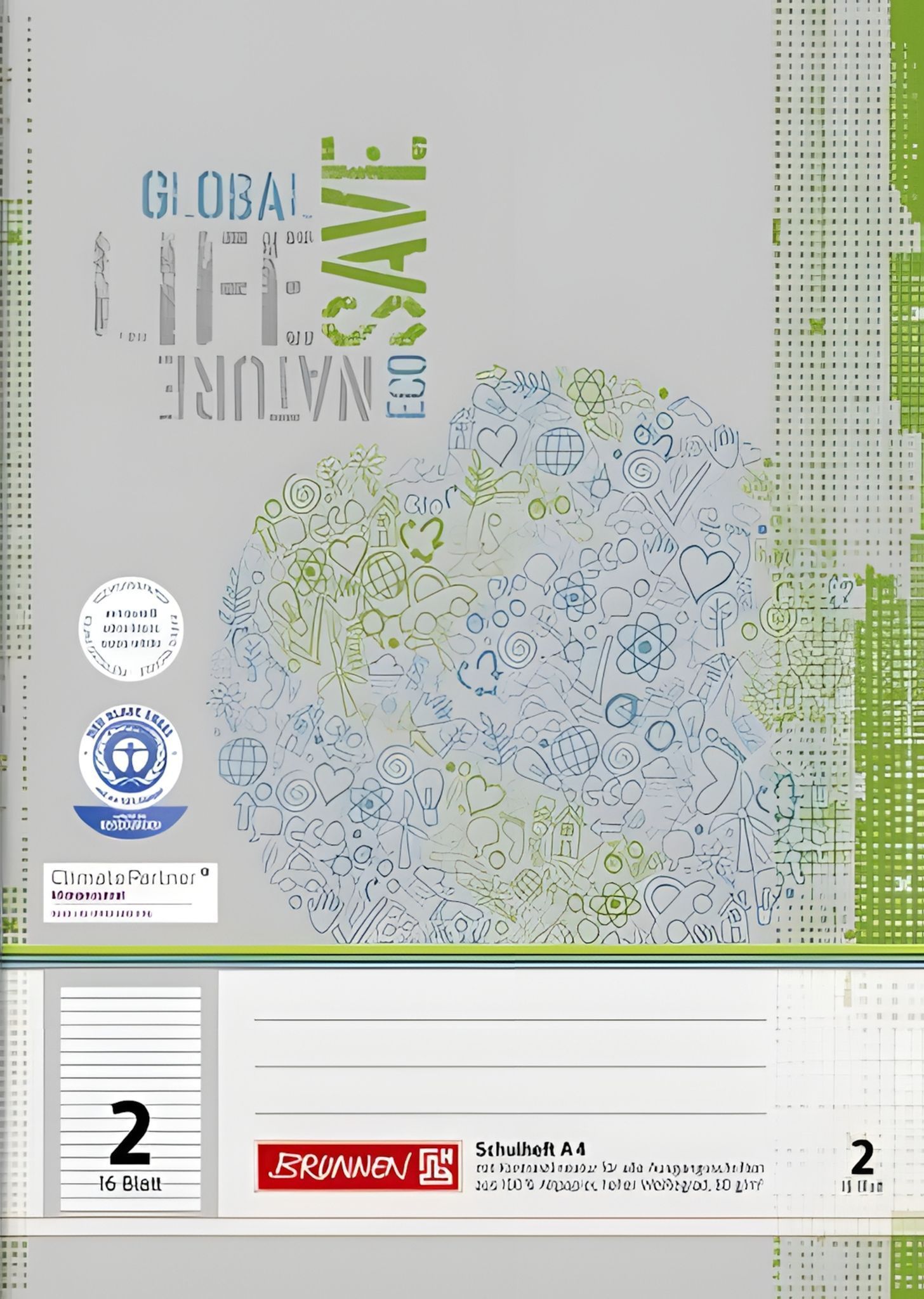 Brunnen Brunnen Schulheft A4 Lineatur 2 16 Blatt Recyclingpapier 104418201