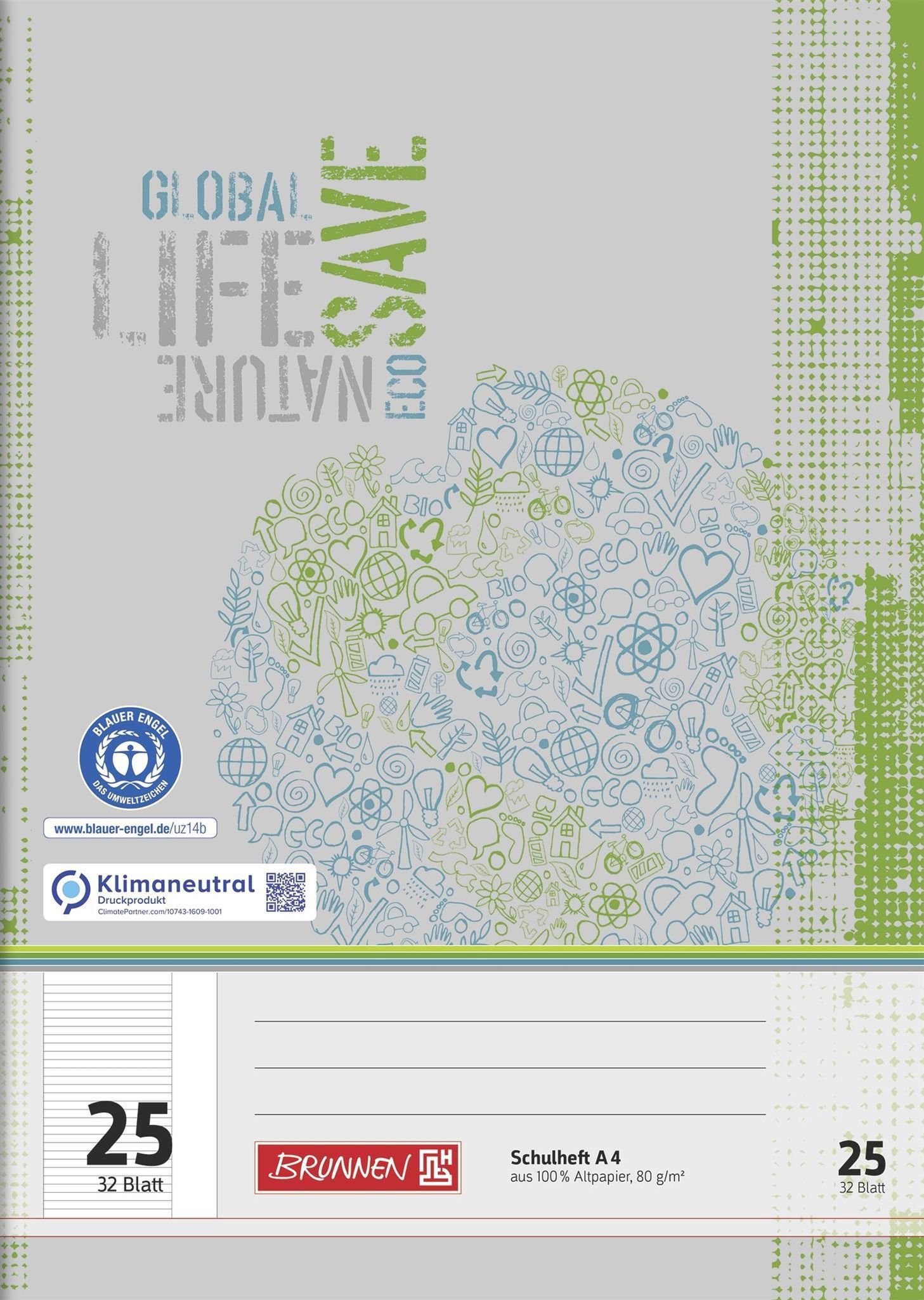 Brunnen Brunnen Schulheft A4 liniert Lineatur 25 32 Blatt Recyclingpapier