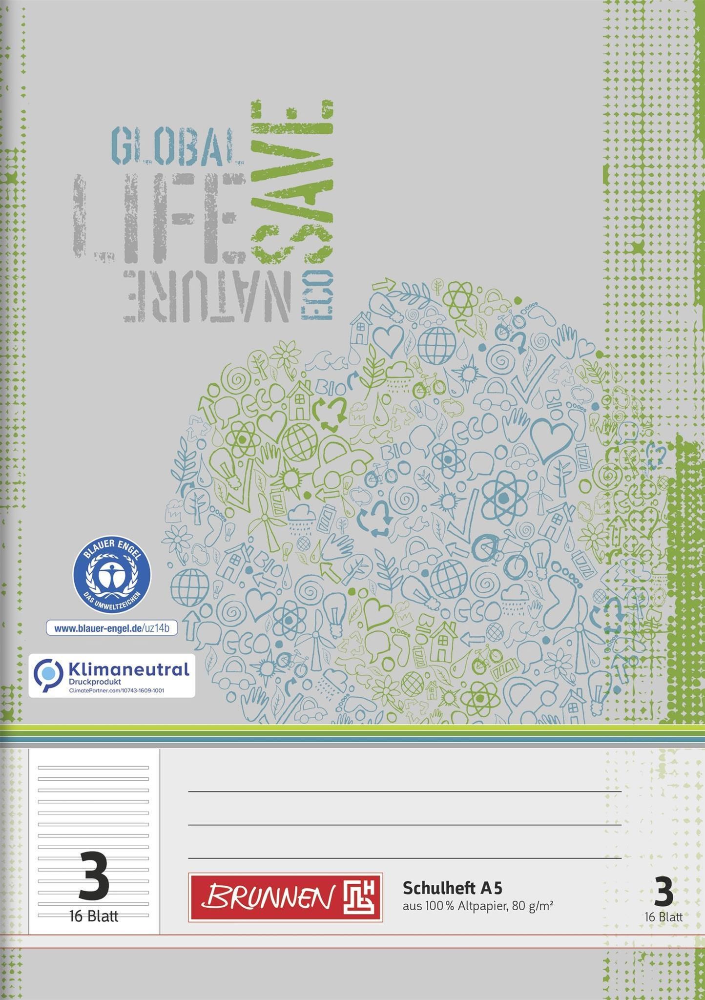 Brunnen Brunnen Schulheft A5 Lineatur 3 mit Rand 16 Blatt Recyclingpapier