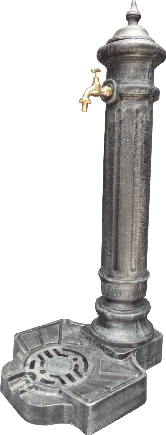 Brunnen Stand Wasserentnahmestelle Standbrunnen Metall Aluminium komplett mit Schale