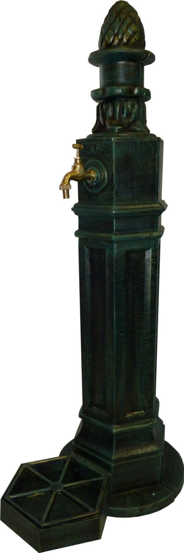 Brunnen Stand Wasserentnahmestelle Standbrunnen Metall Aluminium komplett mit Schale