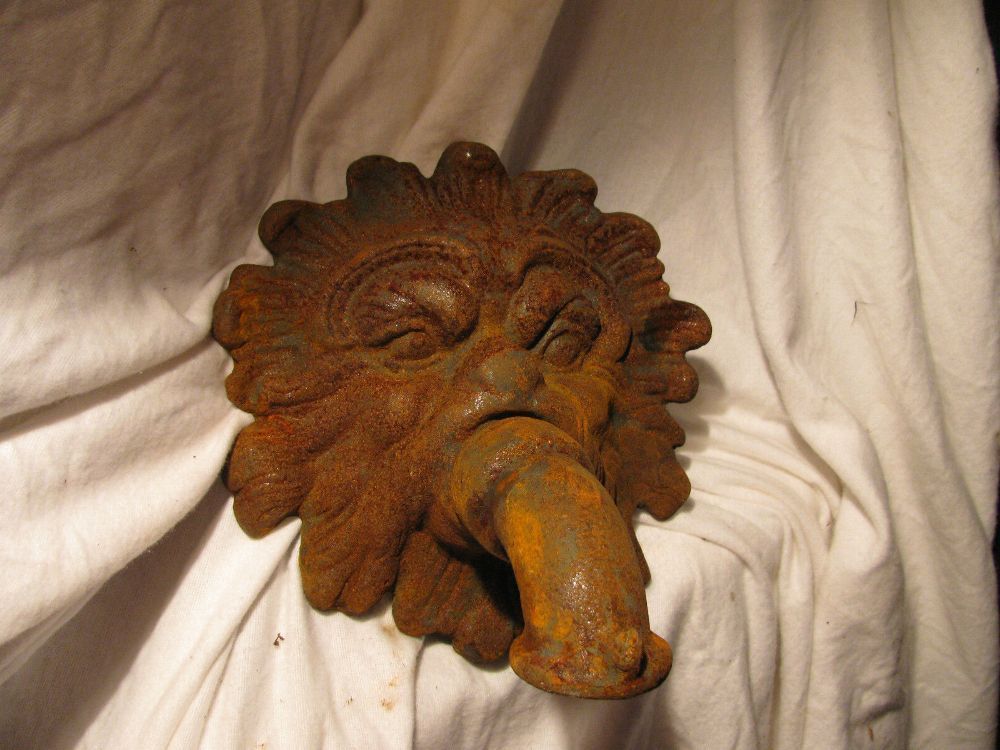 Schöner Wasserspeier für ein Brunnen, Wasserspiel oder Zapfstelle !! Hier kaufen Sie einen sehr schönen Brunnenauslauf, der nach alten Vorbildern aus Gusseisen hergestellt worden ist. Es ist also ein Repro. Das Gesicht hat die Maße von ca. höhe x breite 20cm, die tiefe der Fratze eingebaut ca.15cm m