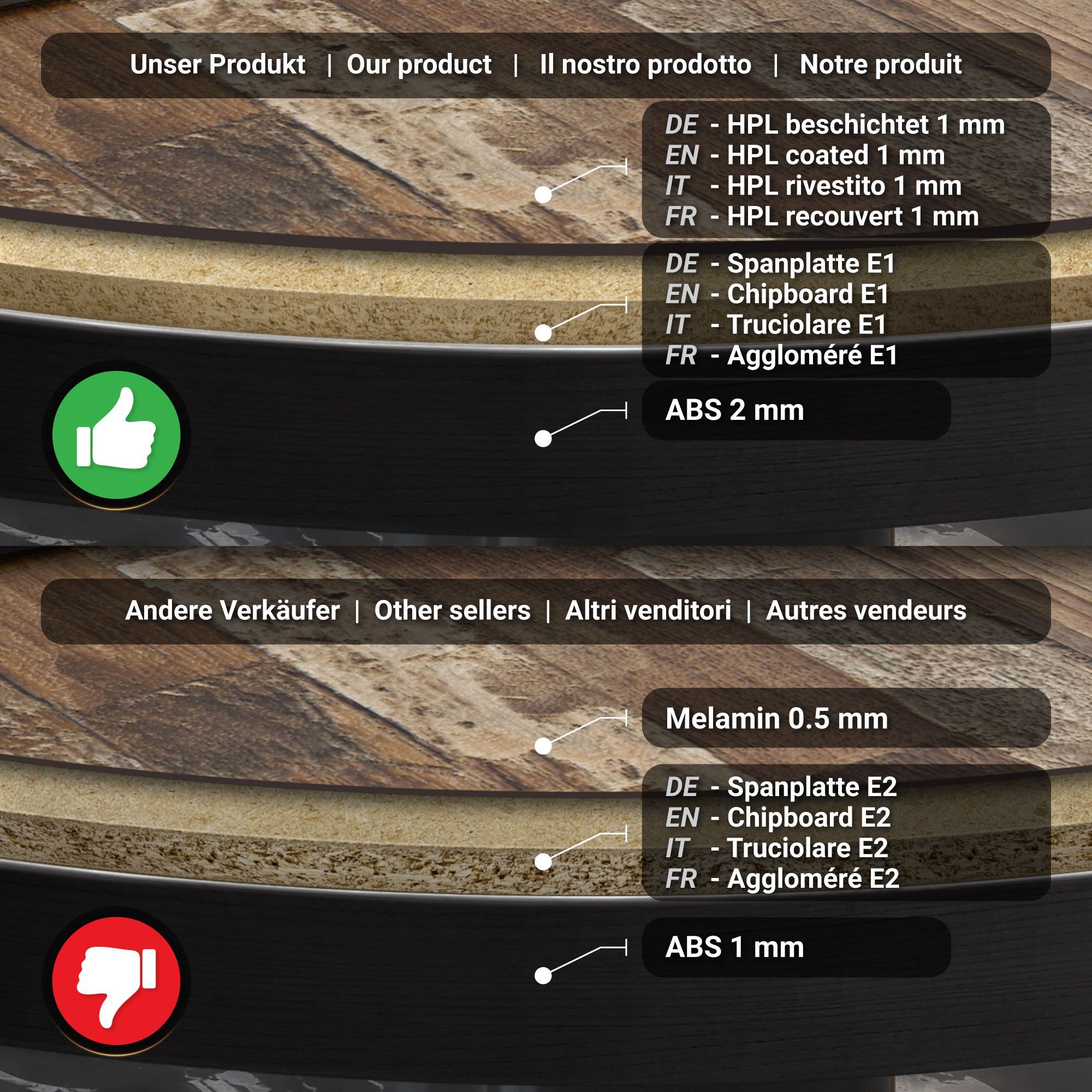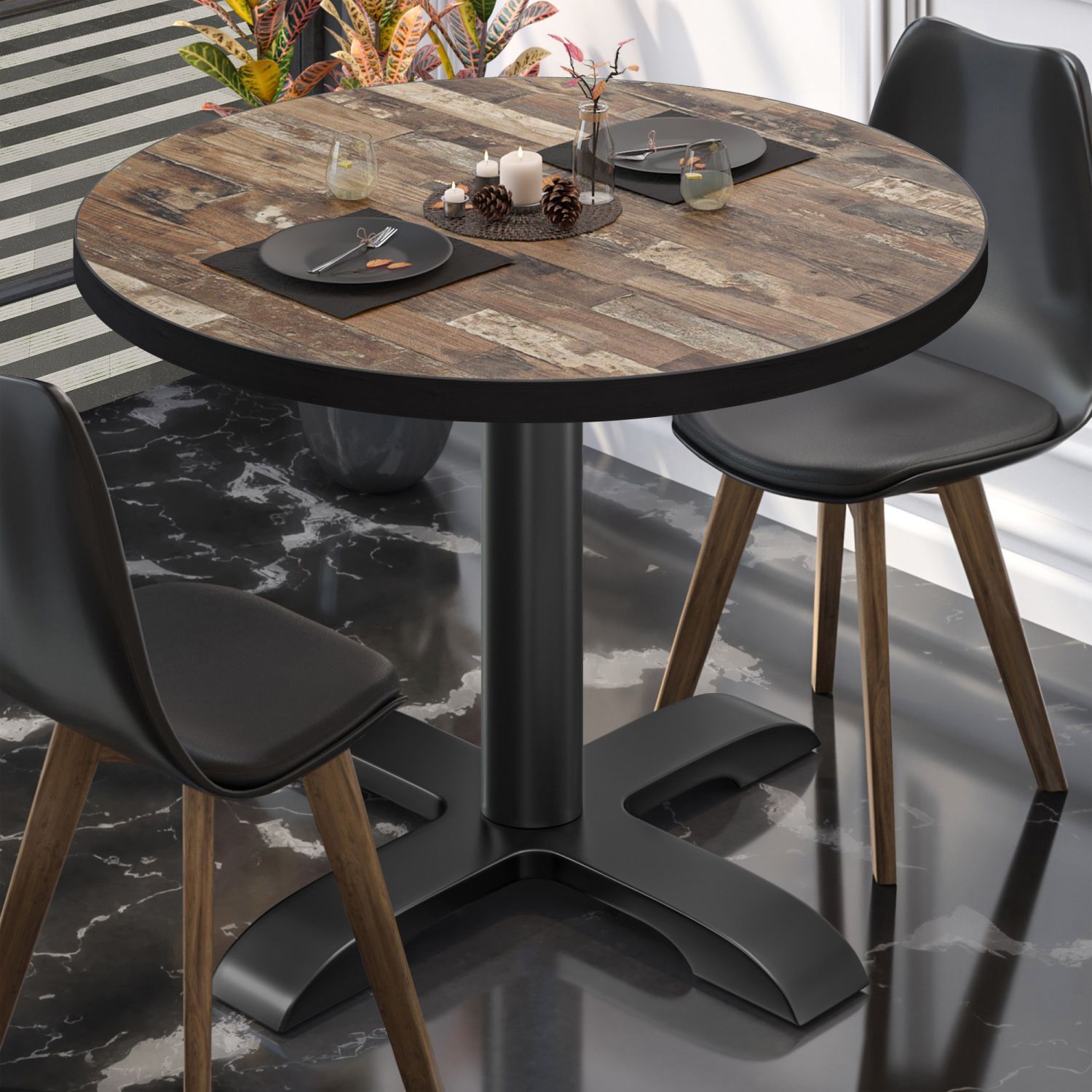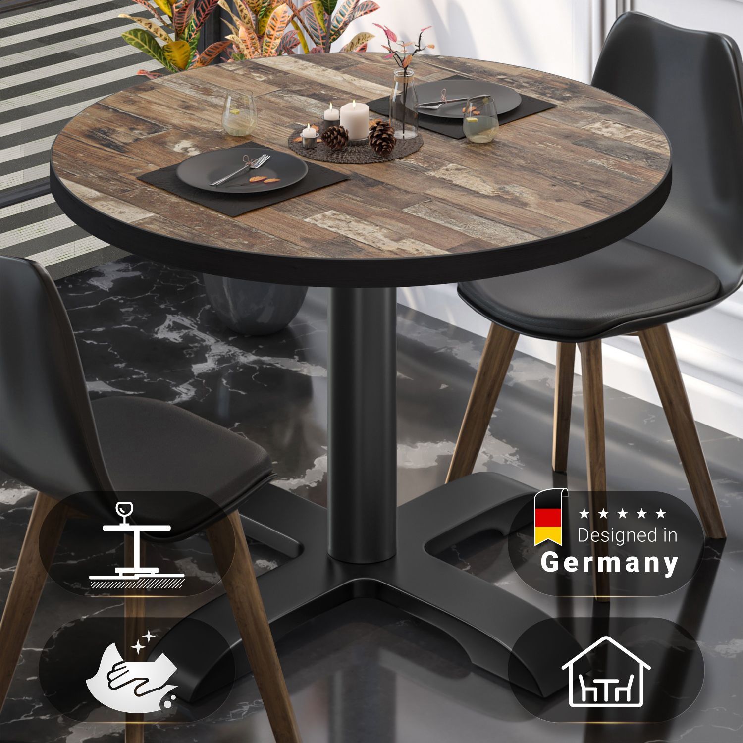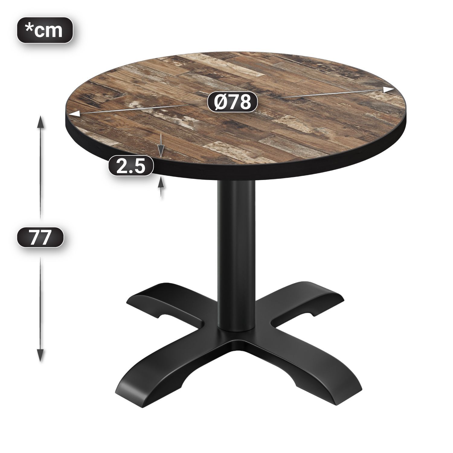 BSD | Bistro Tisch | Ø 80 x 74,5 cm | Rund | Schwarzer Rand | Vintage Old / Schwarz