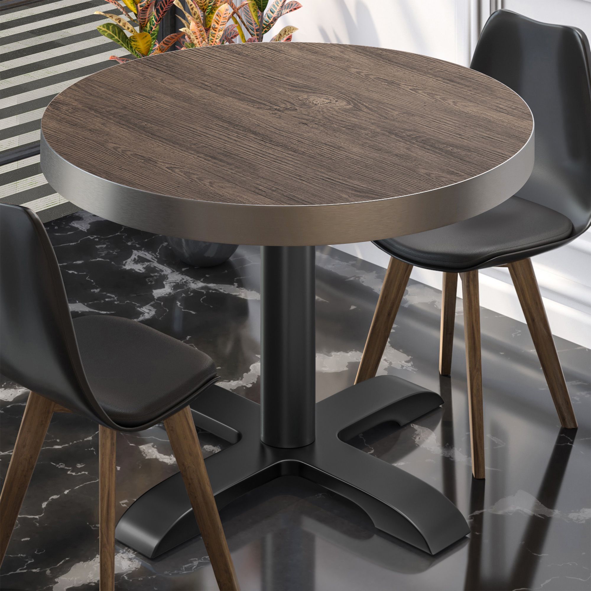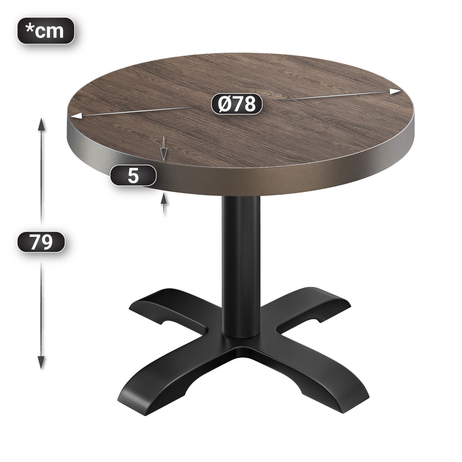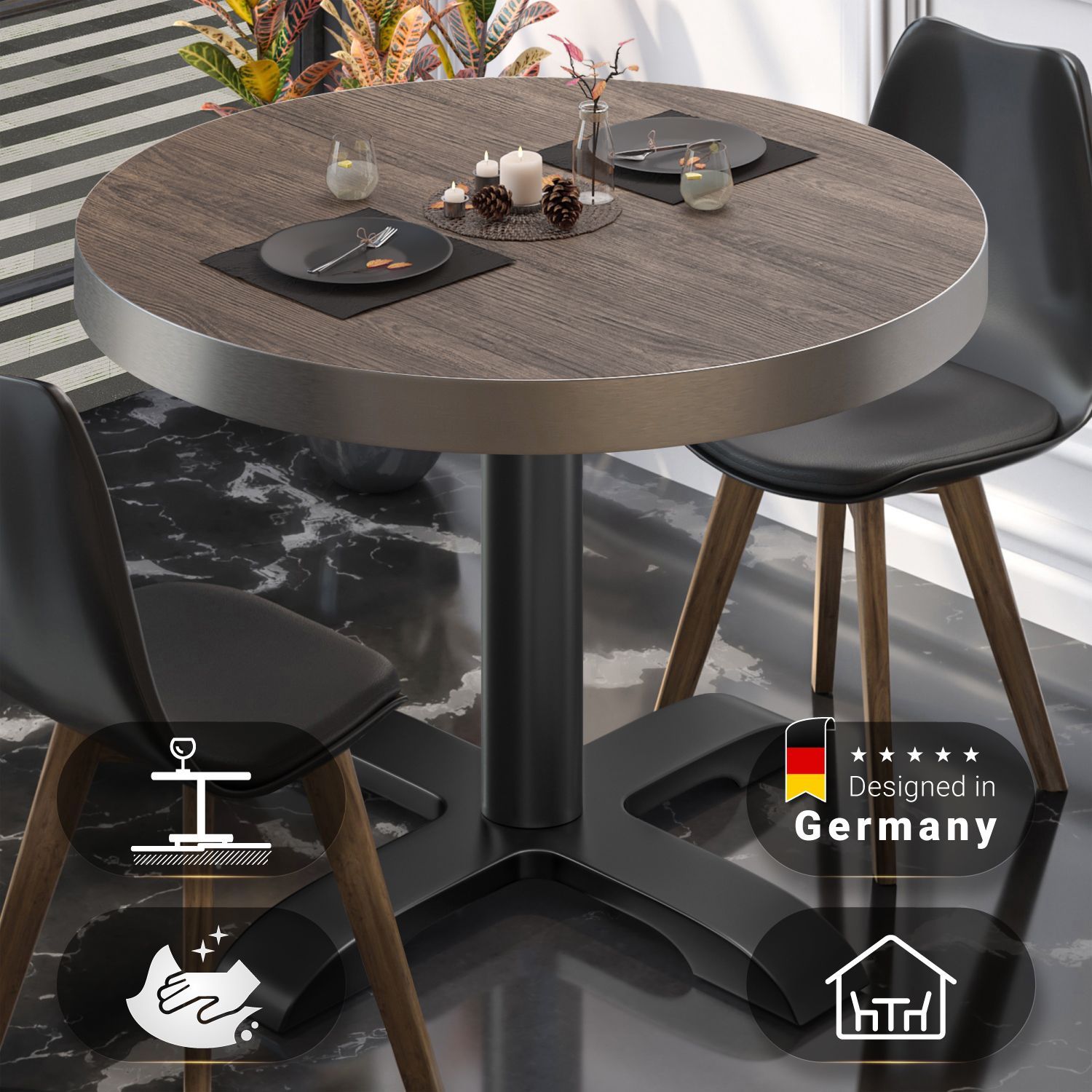 BSD | Bistro Tisch | Ø 80 x 77 cm | Rund | Edelstahl Rand | | Light Wenge / Schwarz