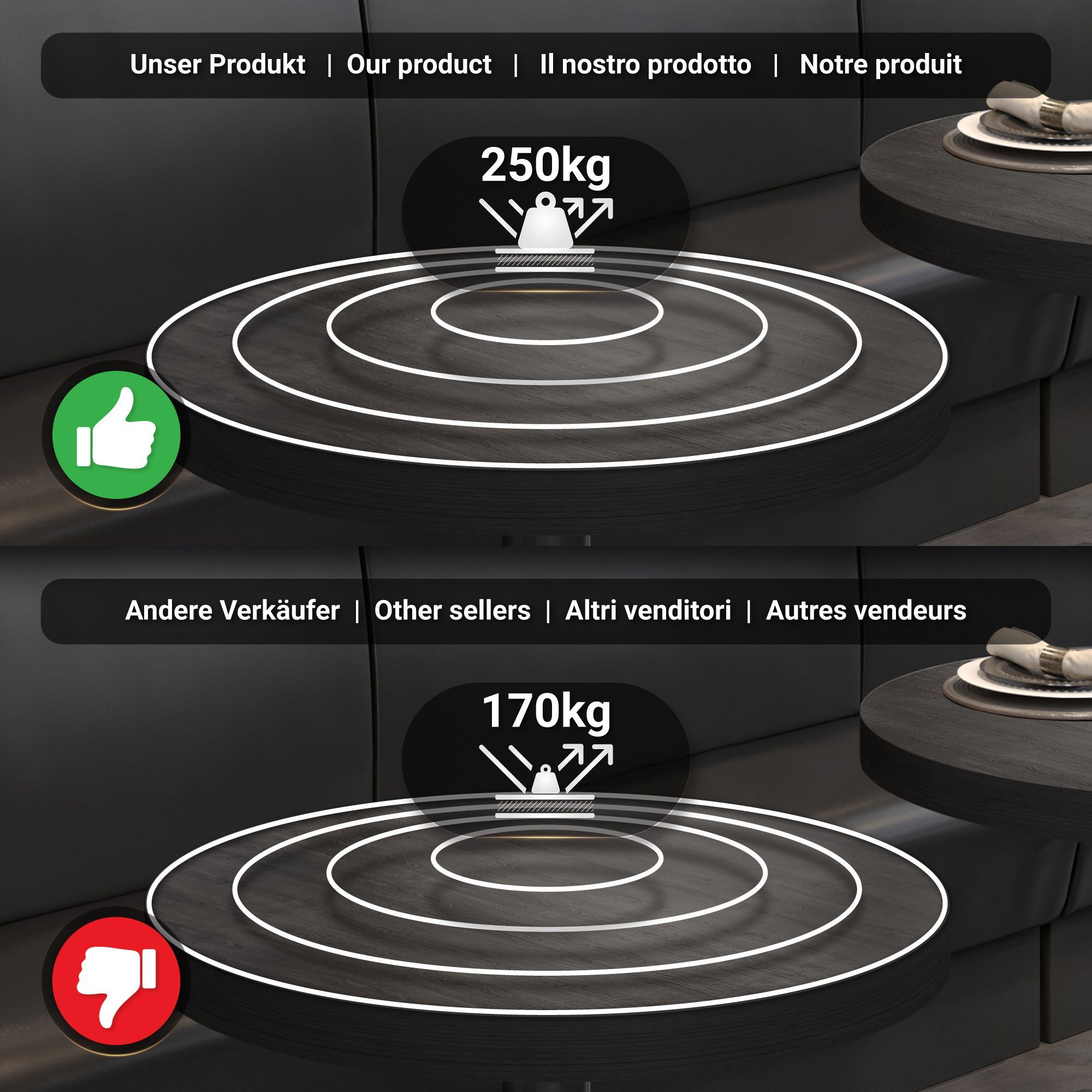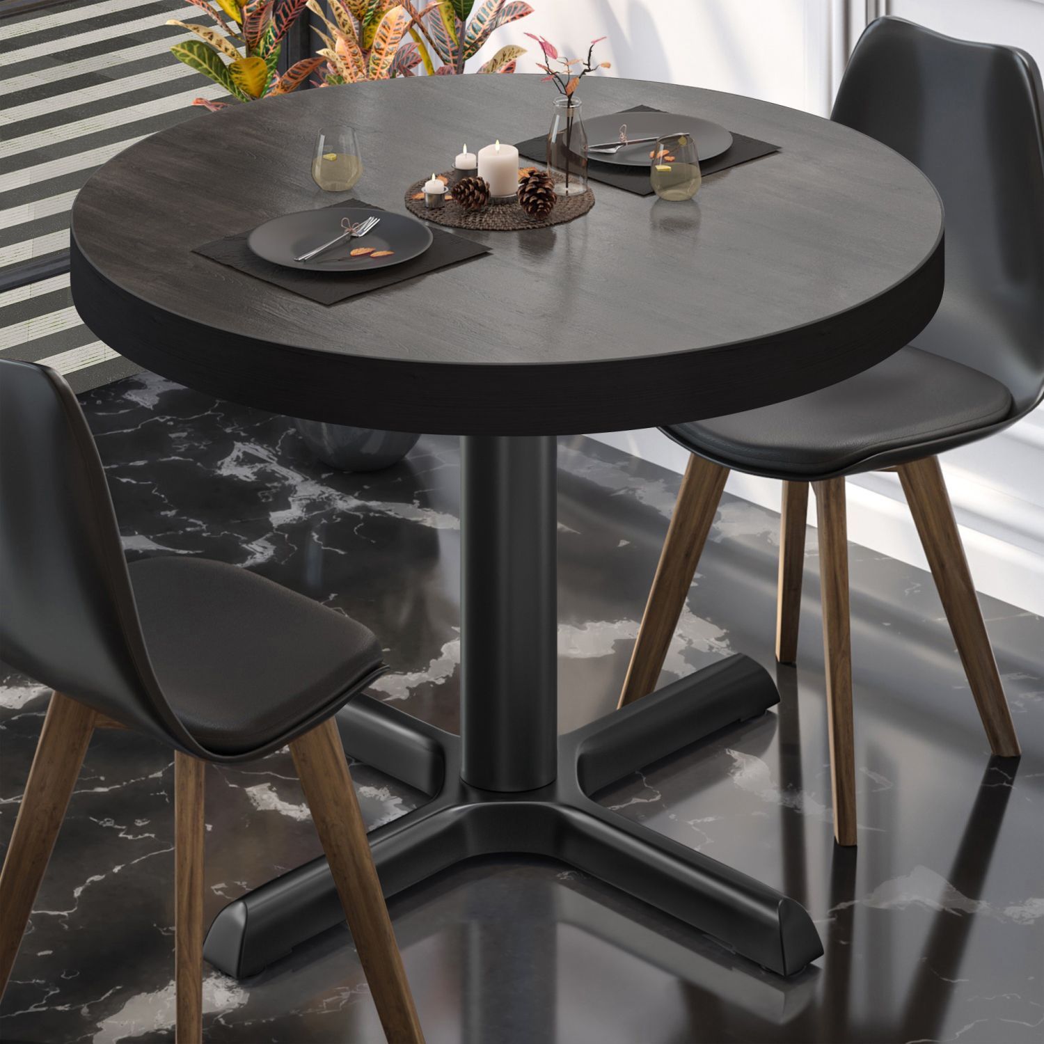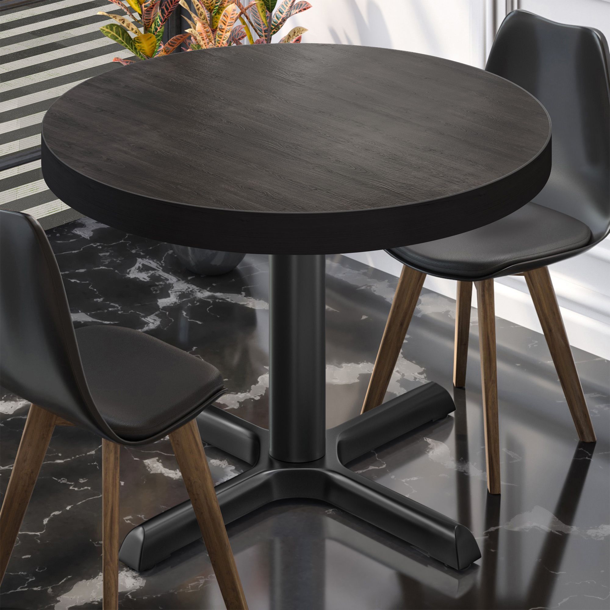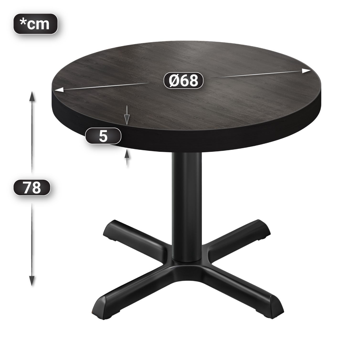BSM | Bistro Tisch | Ø 70 x 77 cm | Schwarzer Rand | Rund | Wenge / Schwarz | Bistro