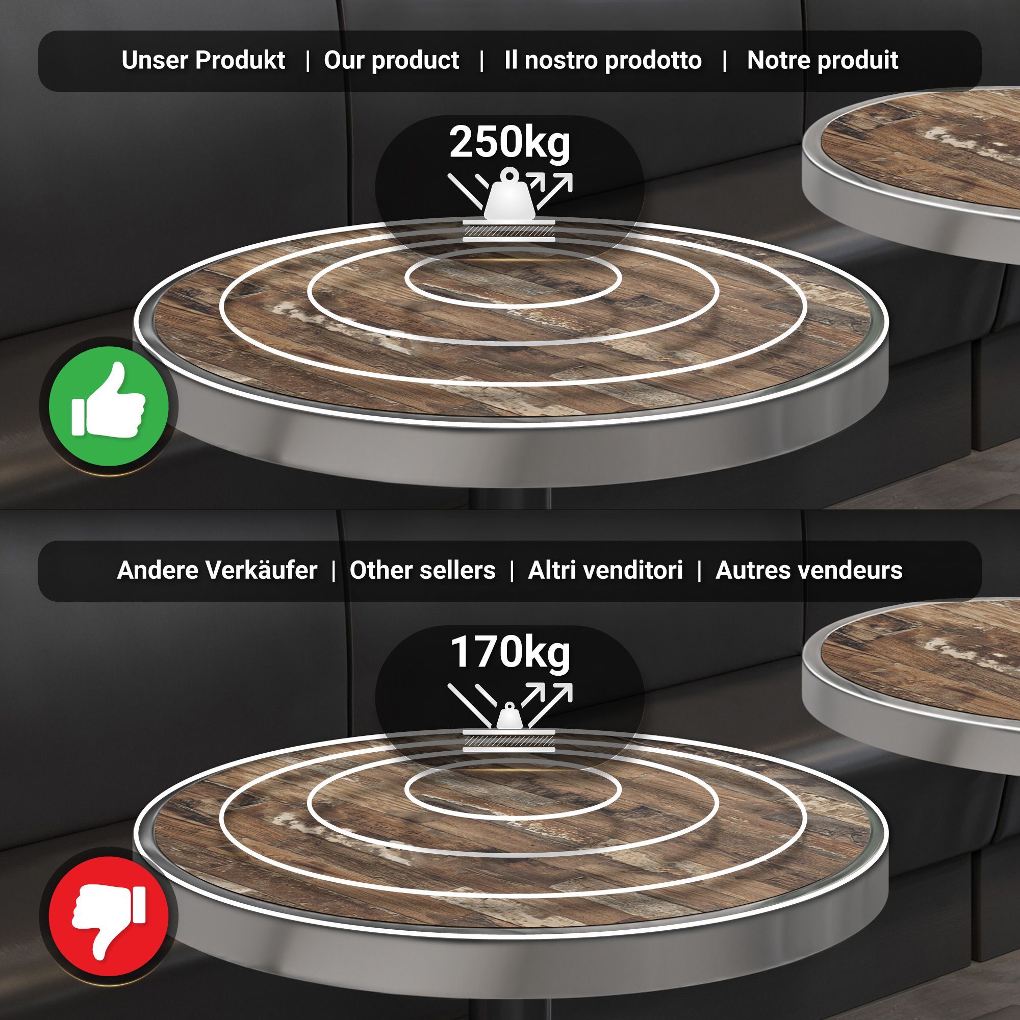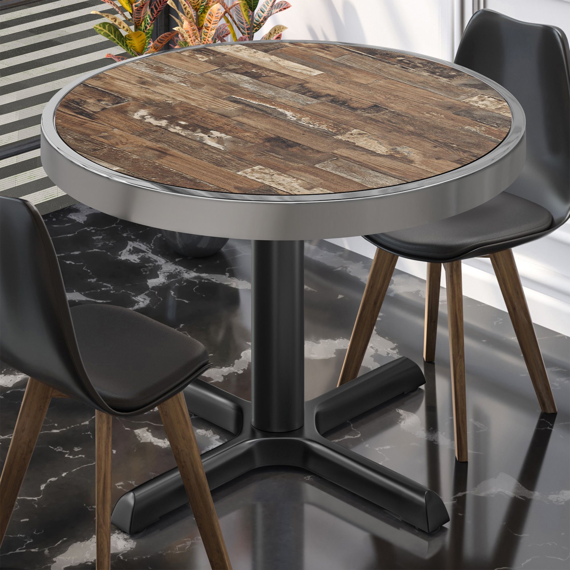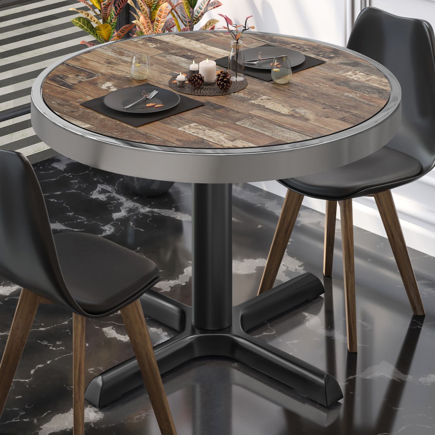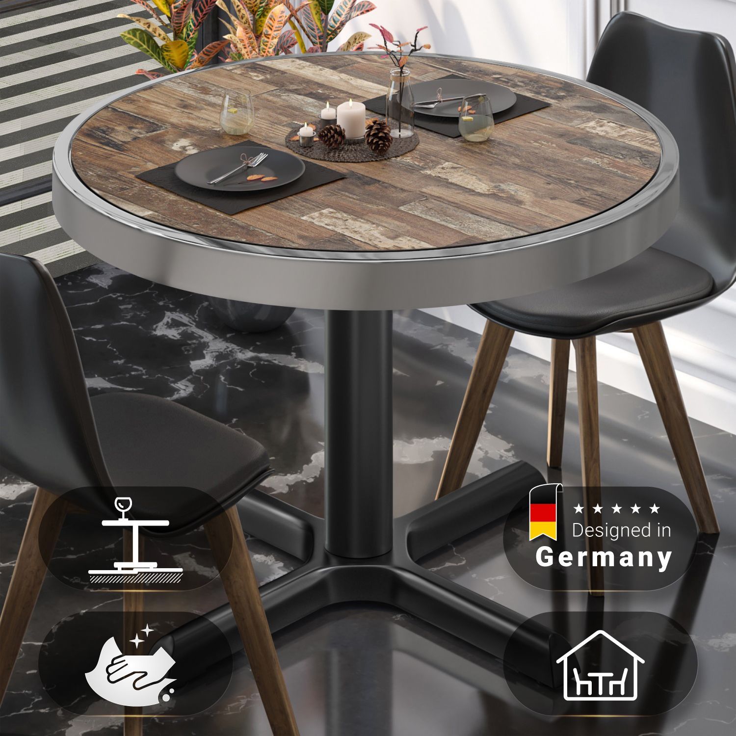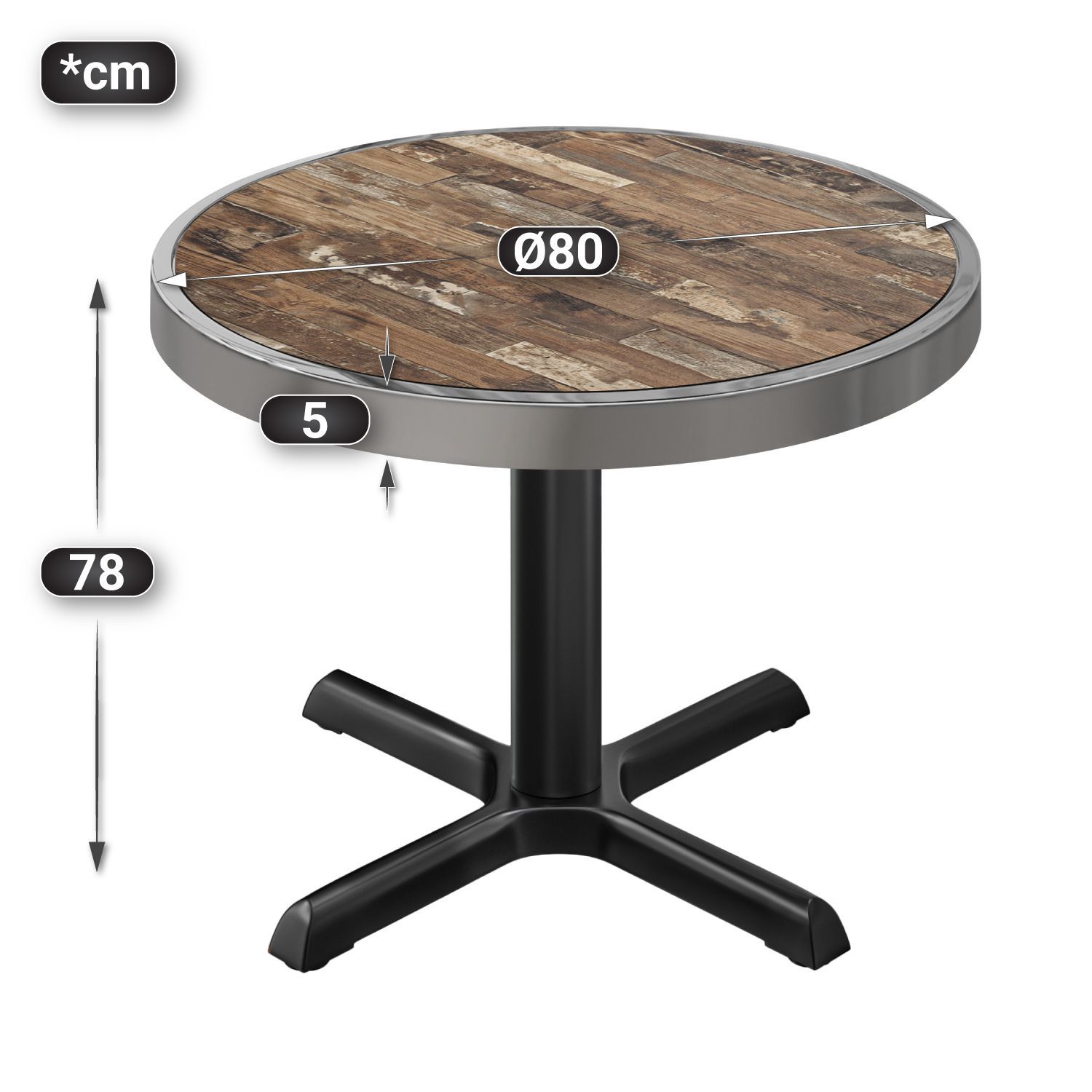 BSM | Bistro Tisch | Ø 80 x 77 cm | Chromrahmen | Rund | Vintage Old / Schwarz | Bis