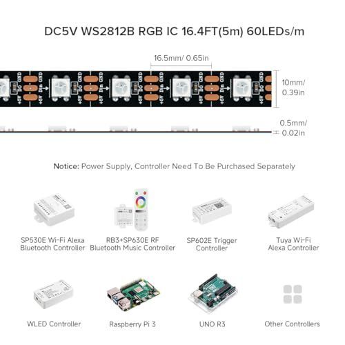 BTF-LIGHTING WS2812B LED Streifen, 5M Länge, 60 LEDs/Pixel/m, 300 LEDs