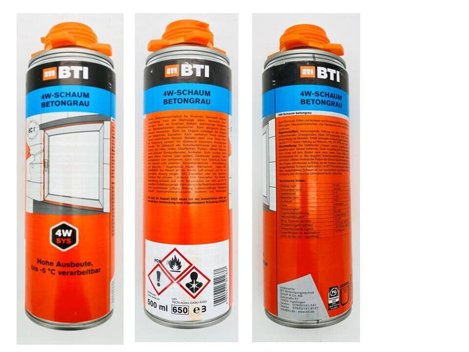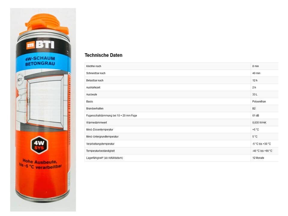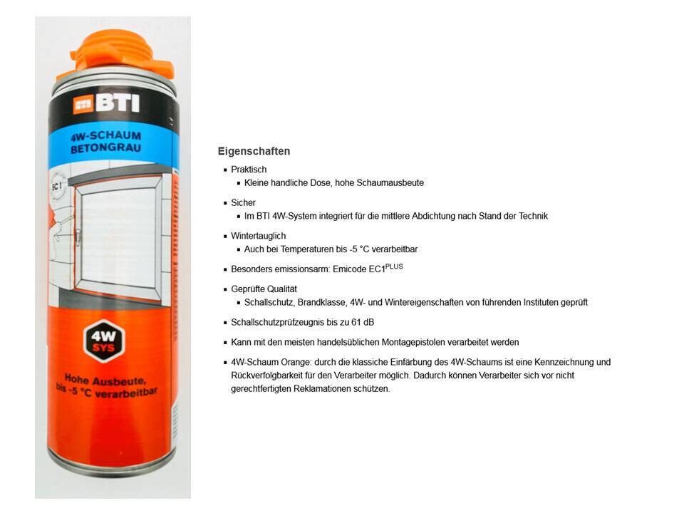 BTI BTI 4W Schaum 500ml betongrau Montageschaum Pistolenschaum Bauschaum PU Schaum
