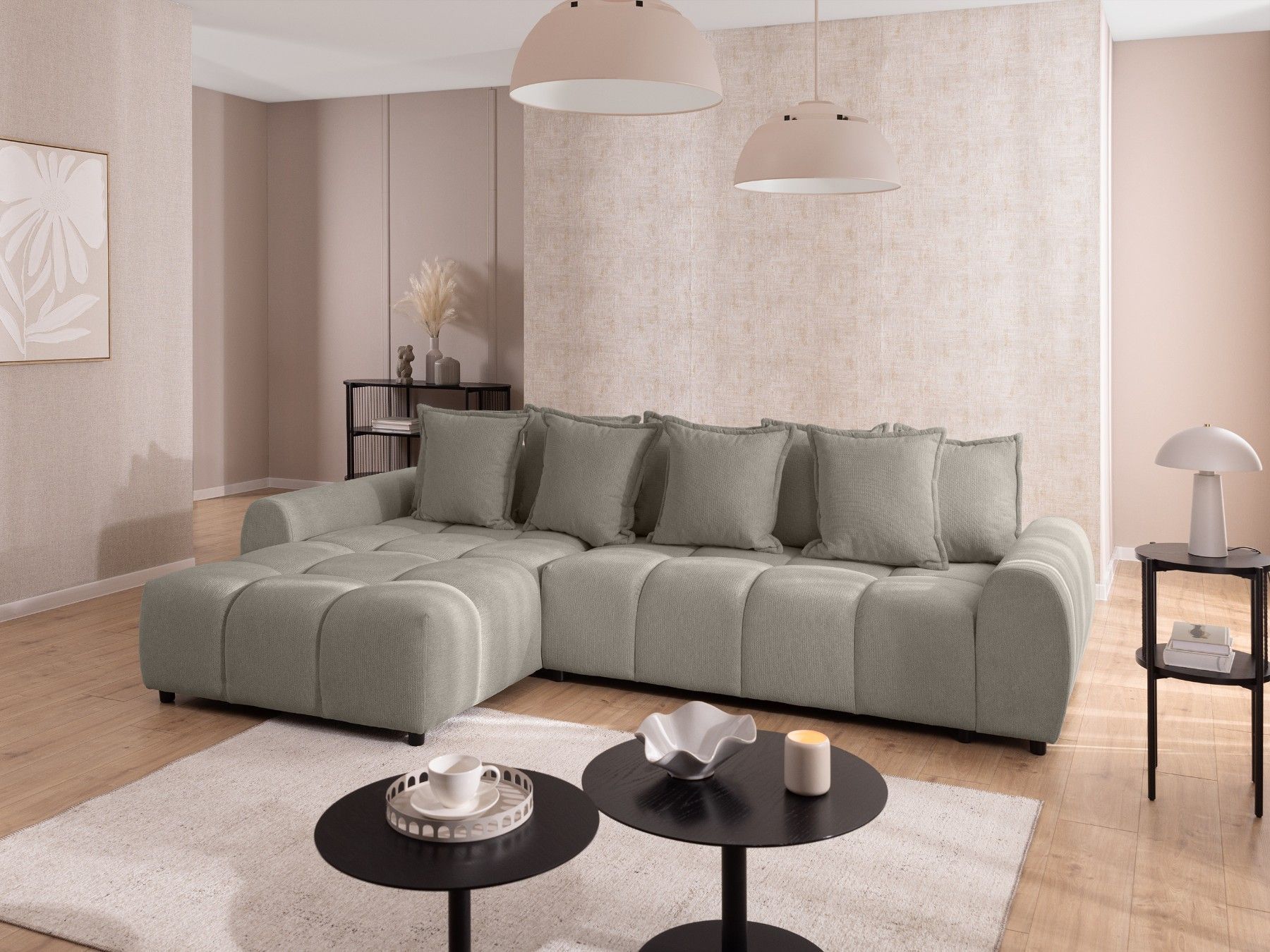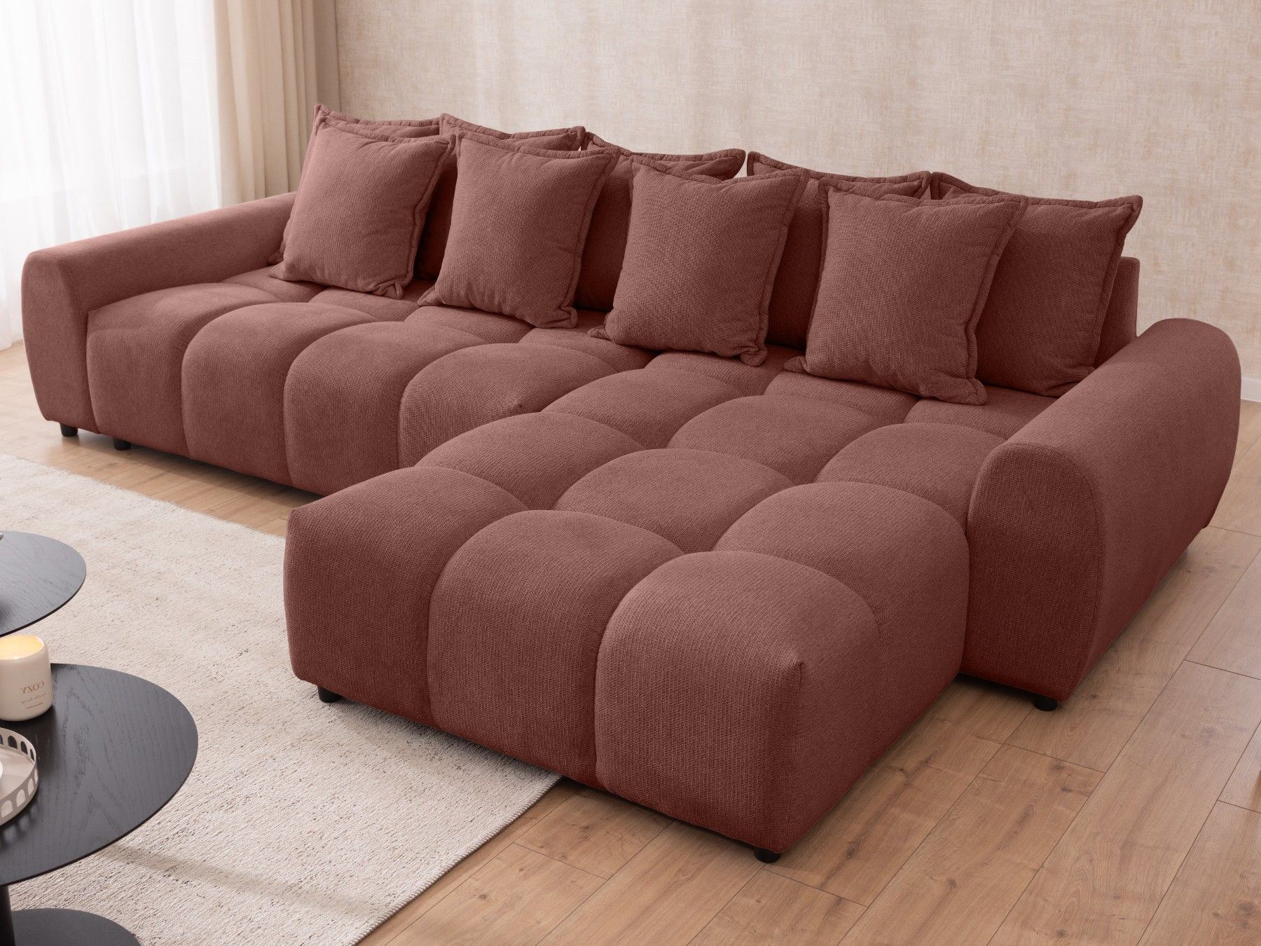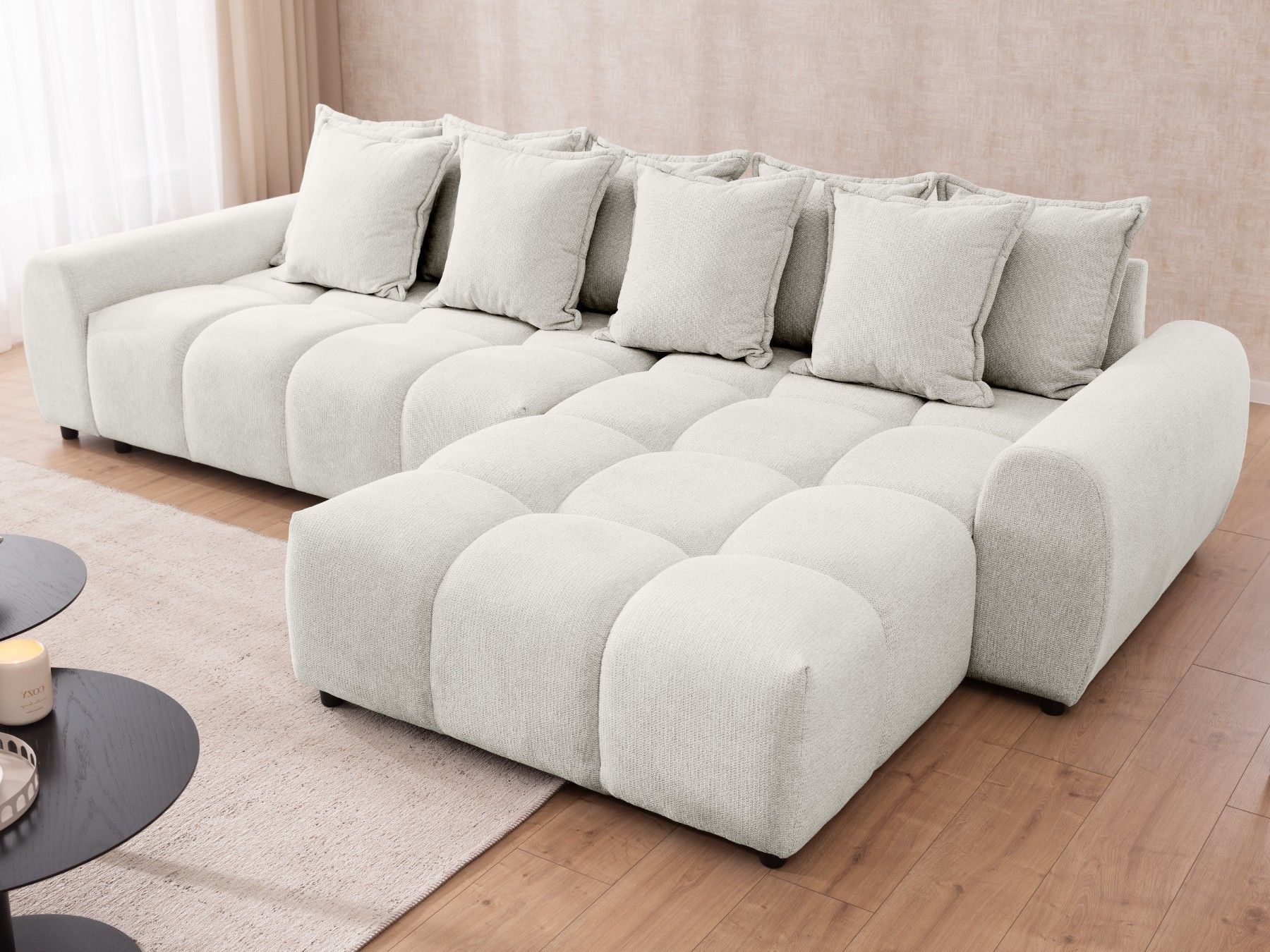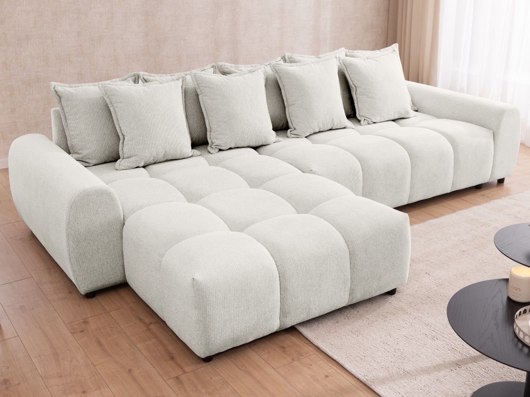 Bubble - Ecksofa mit losen Rückenkissen und Sitzfläche in Bubble-Optik