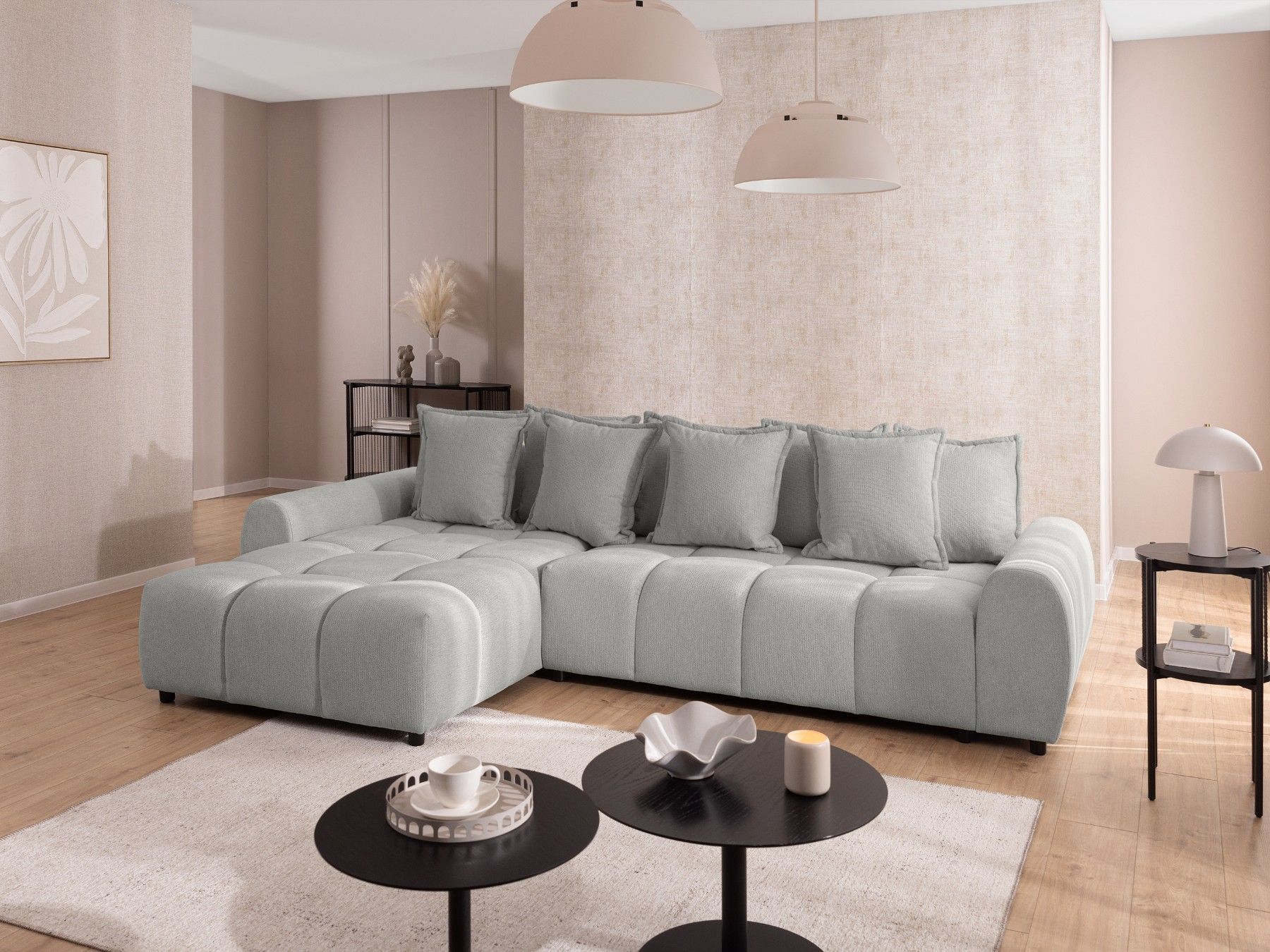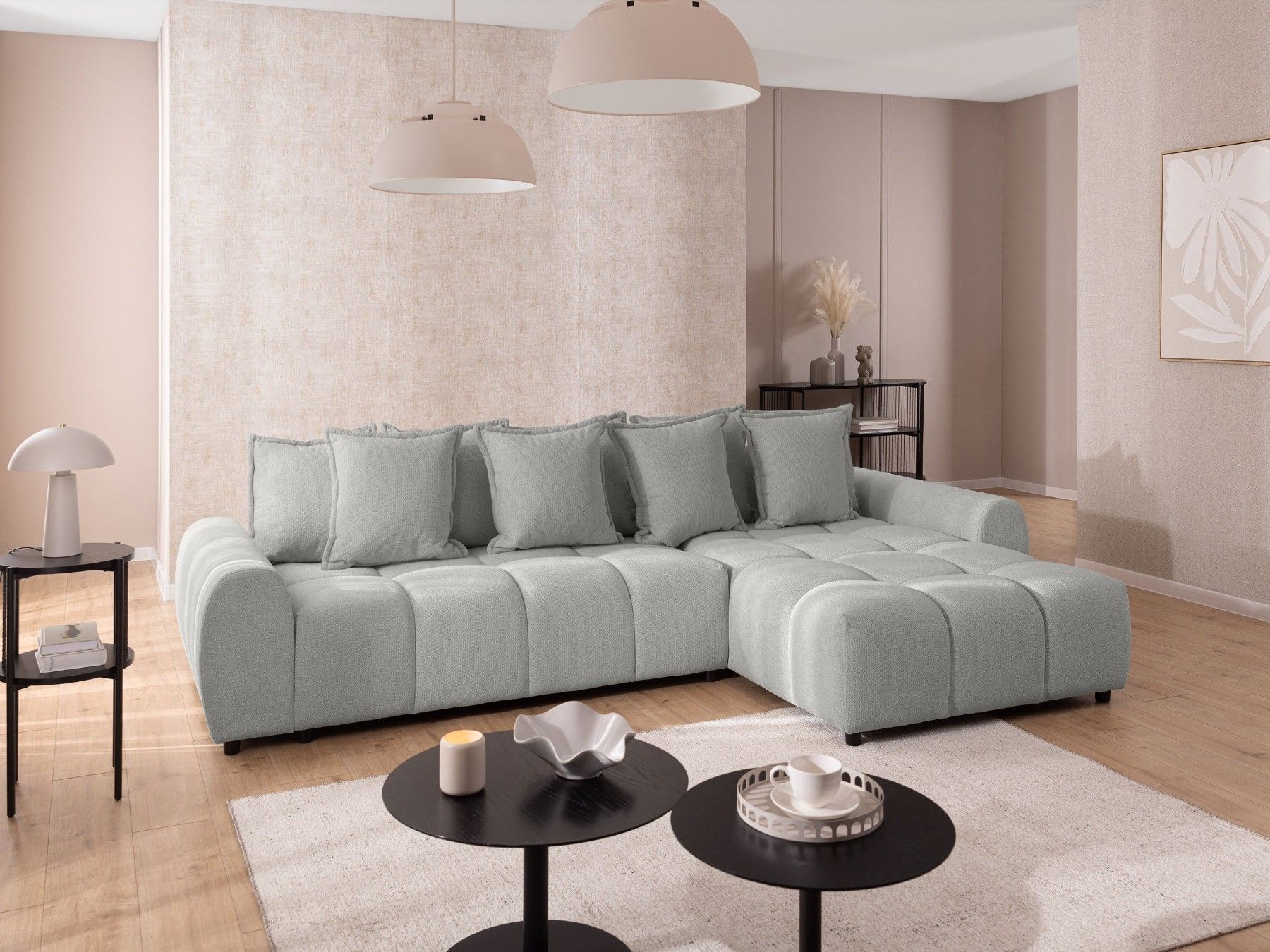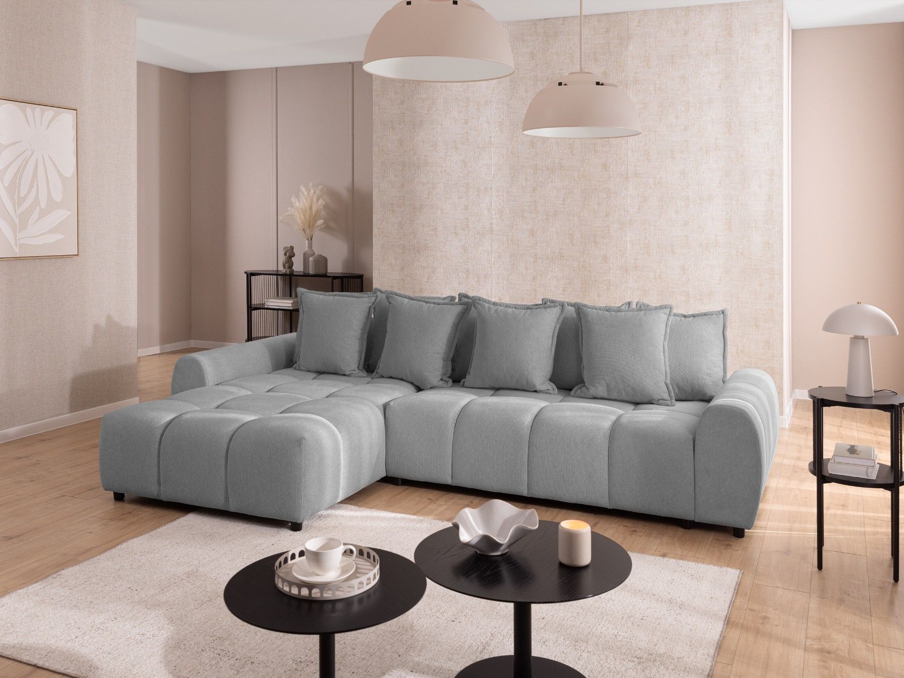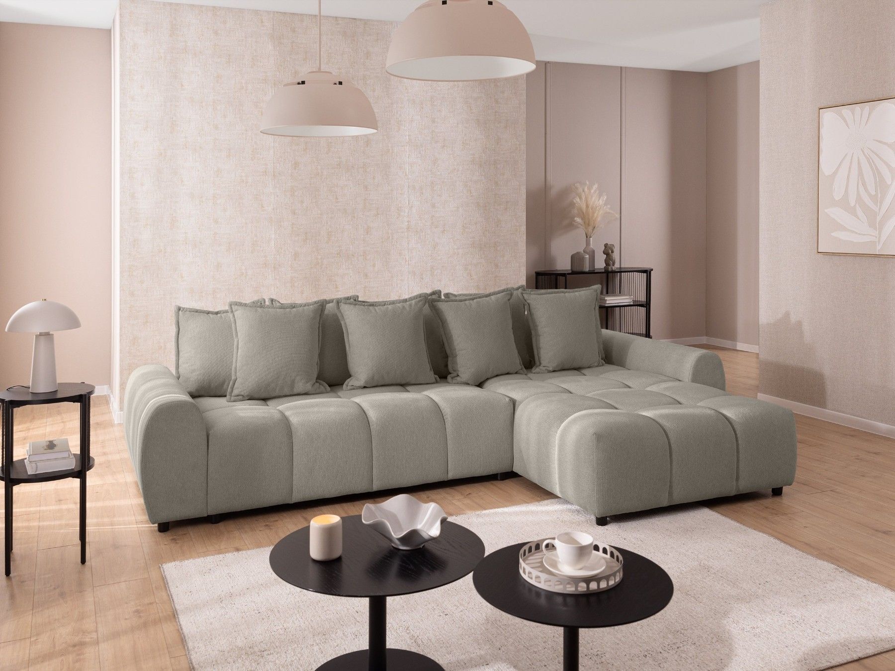 Bubble - Ecksofa mit losen Rückenkissen und Sitzfläche in Bubble-Optik