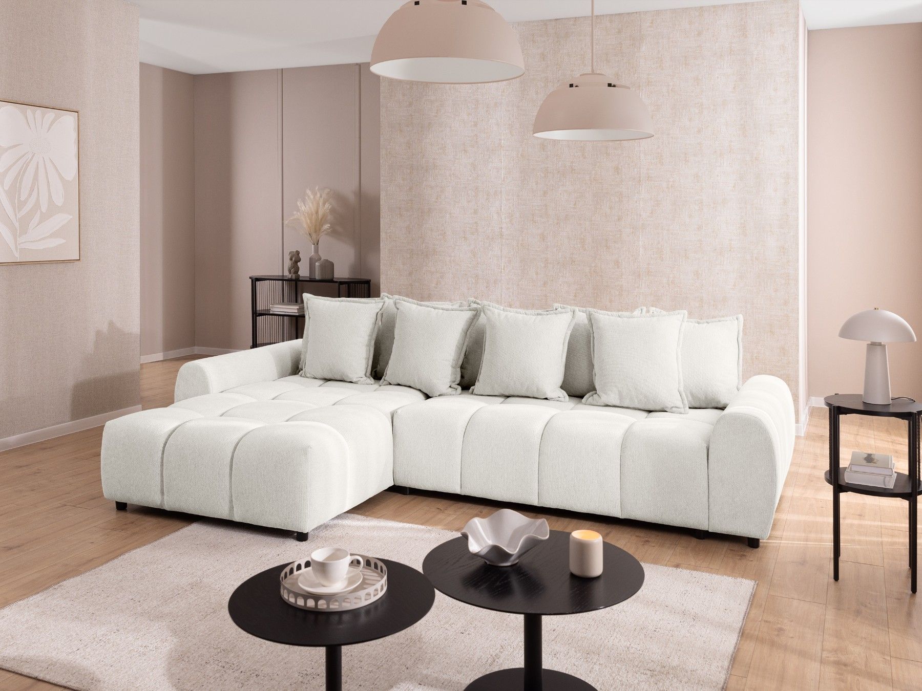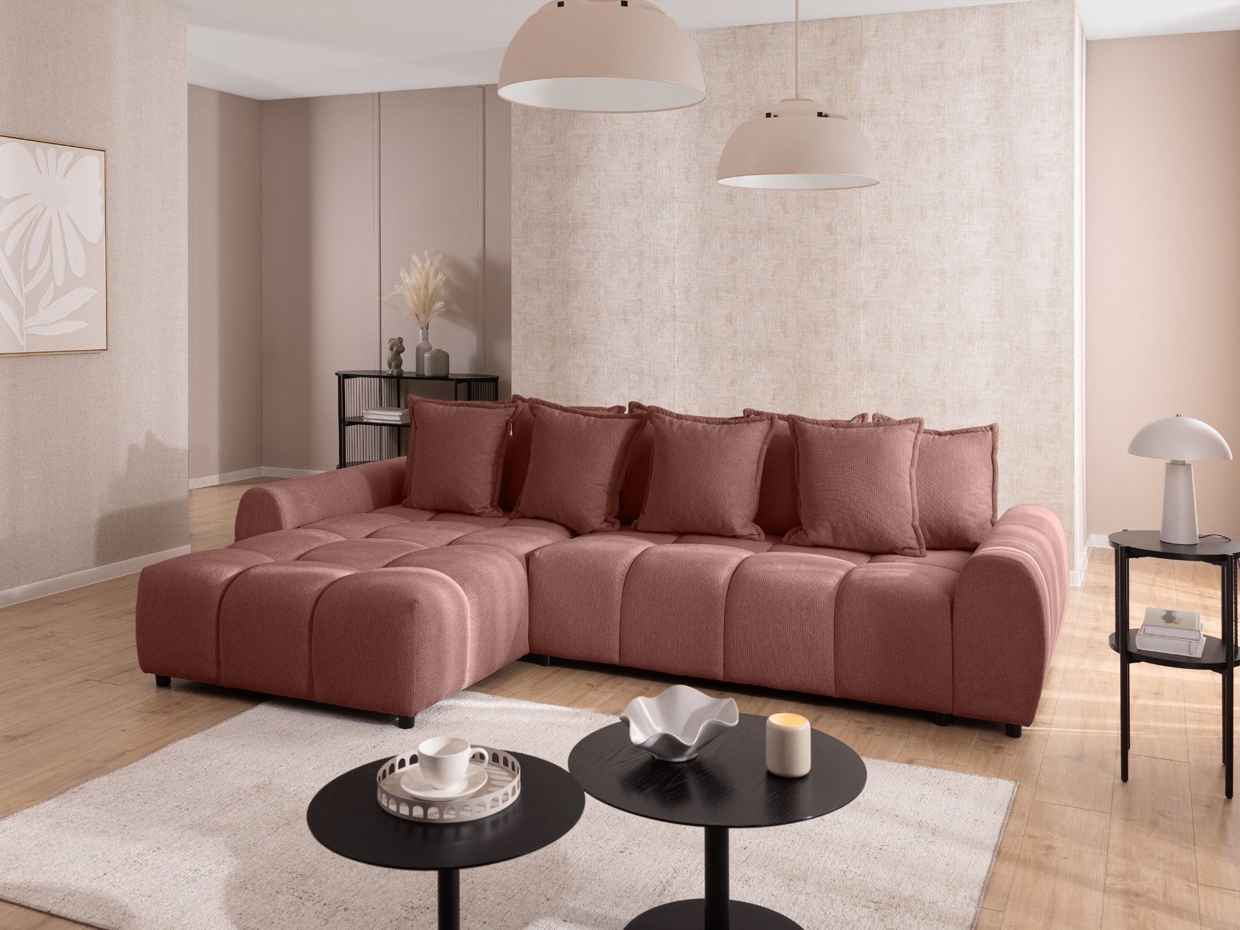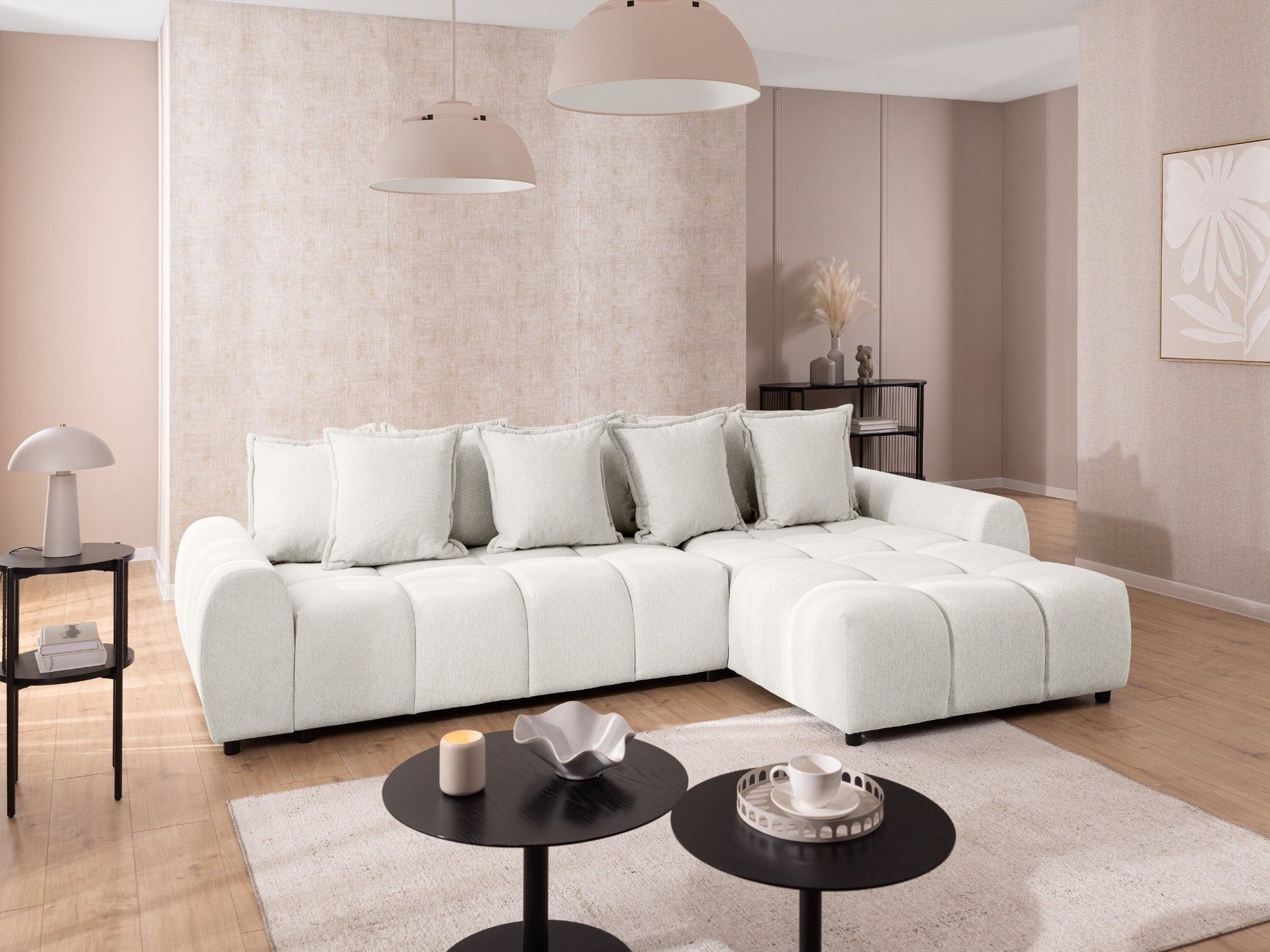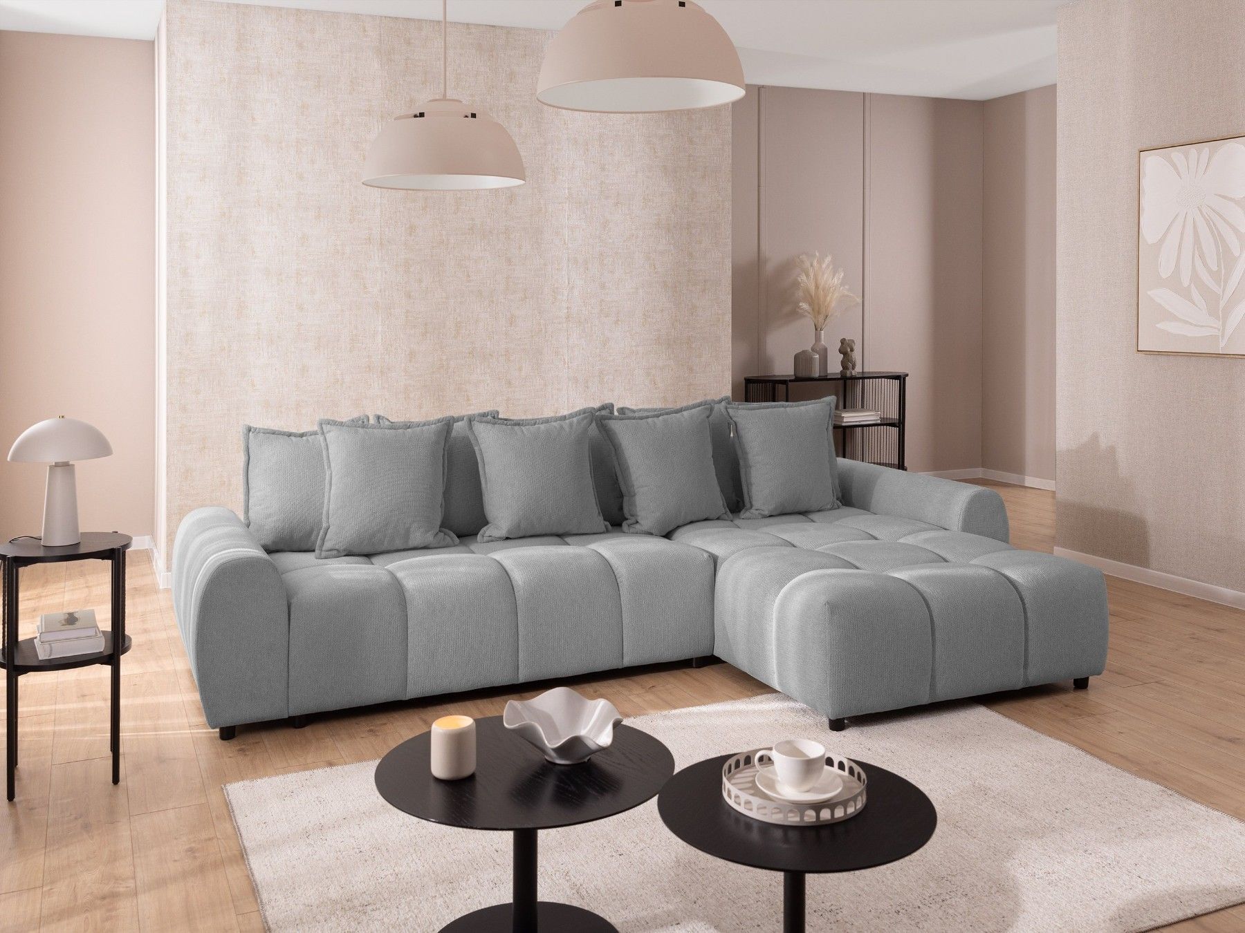 Bubble - Ecksofa mit losen Rückenkissen und Sitzfläche in Bubble-Optik