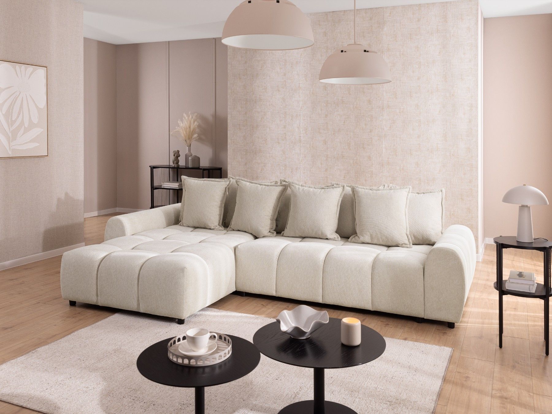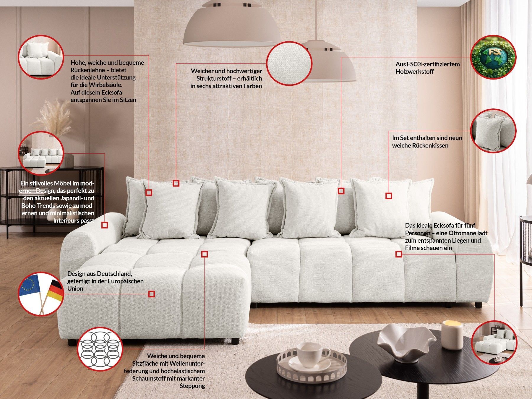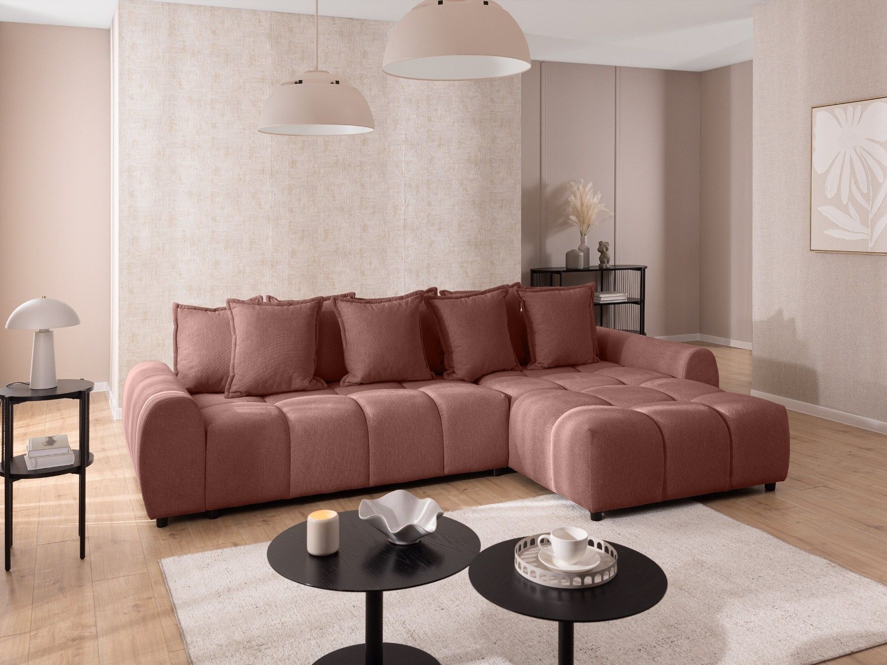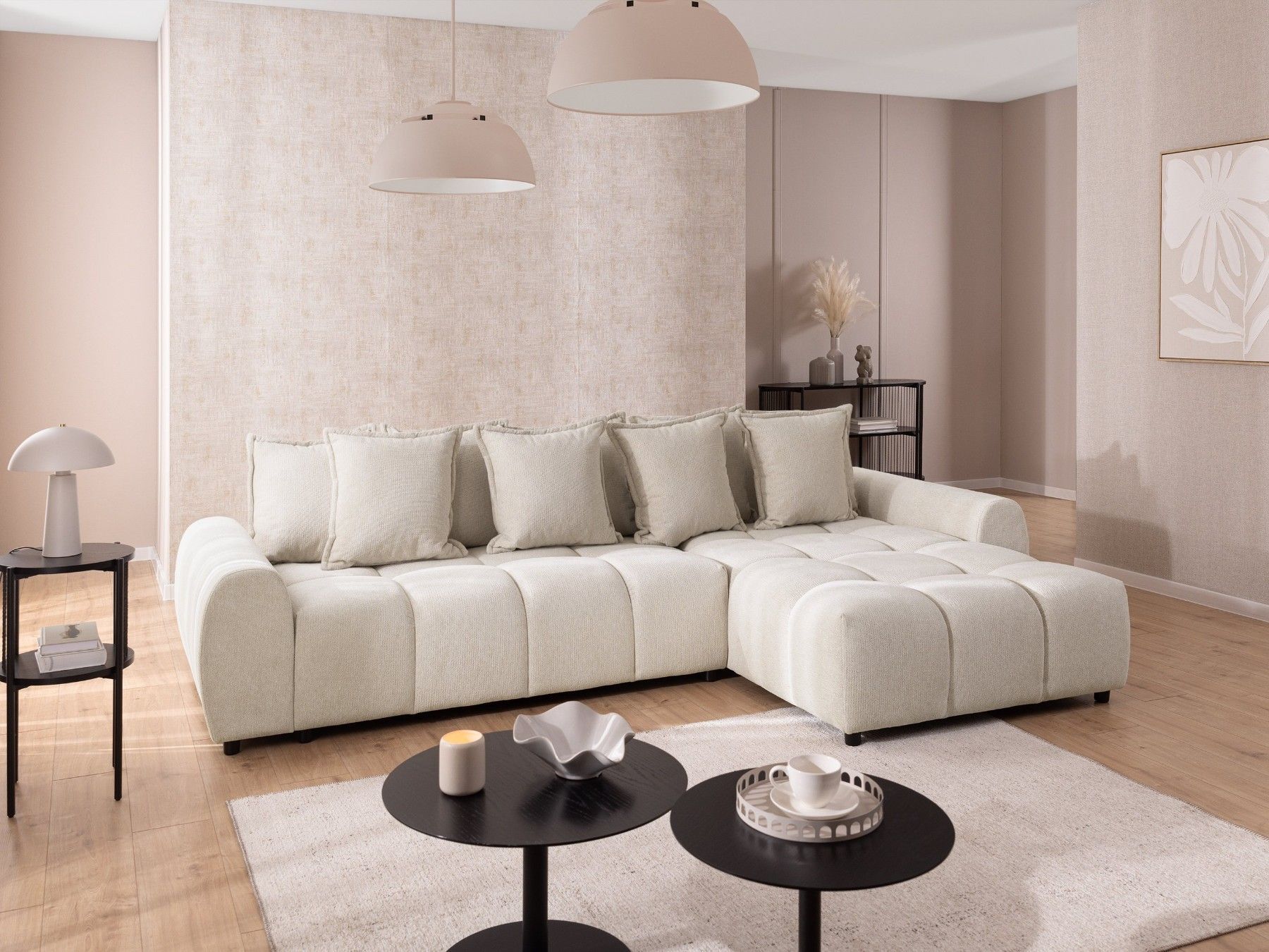 Bubble - Ecksofa mit losen Rückenkissen und Sitzfläche in Bubble-Optik