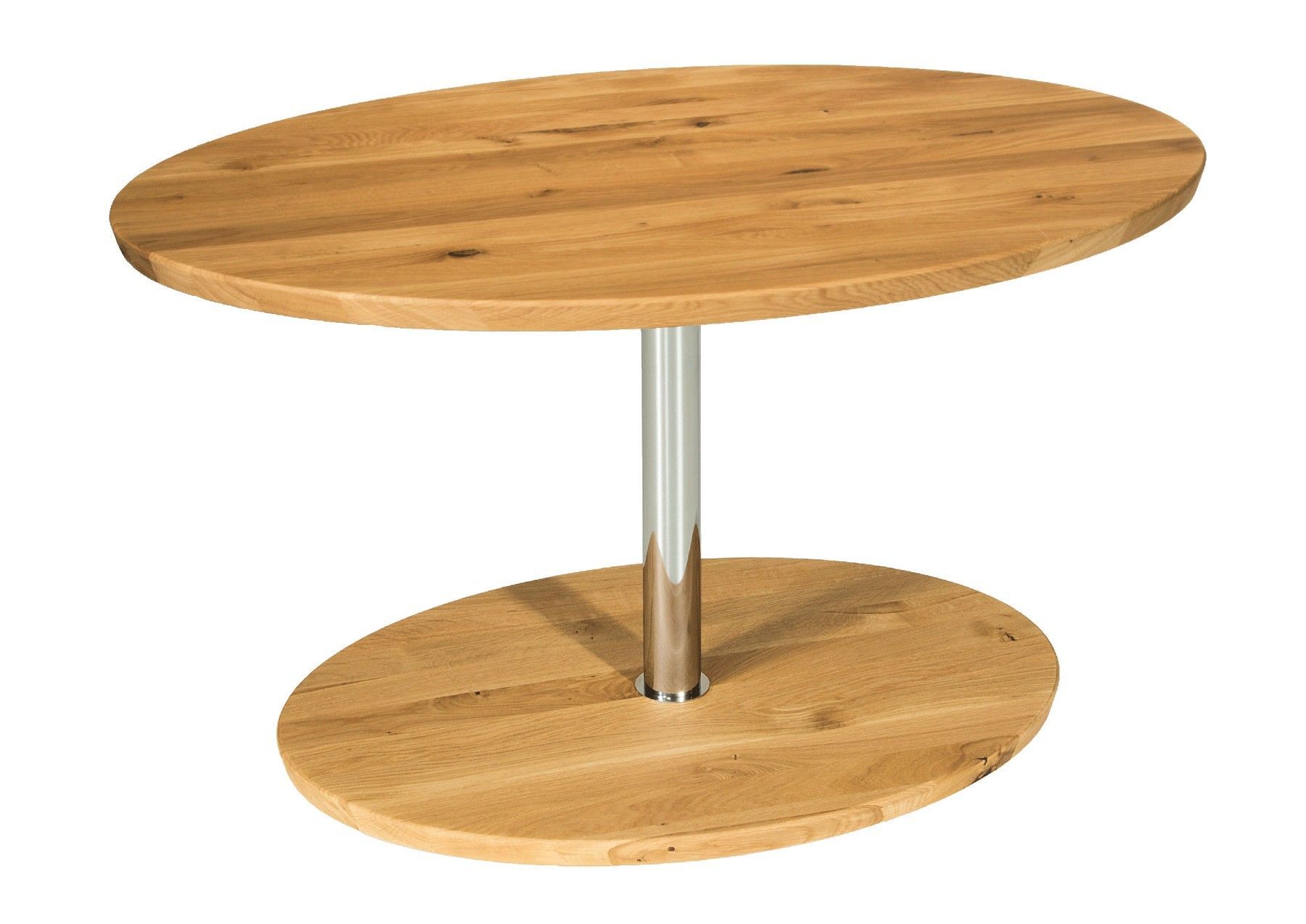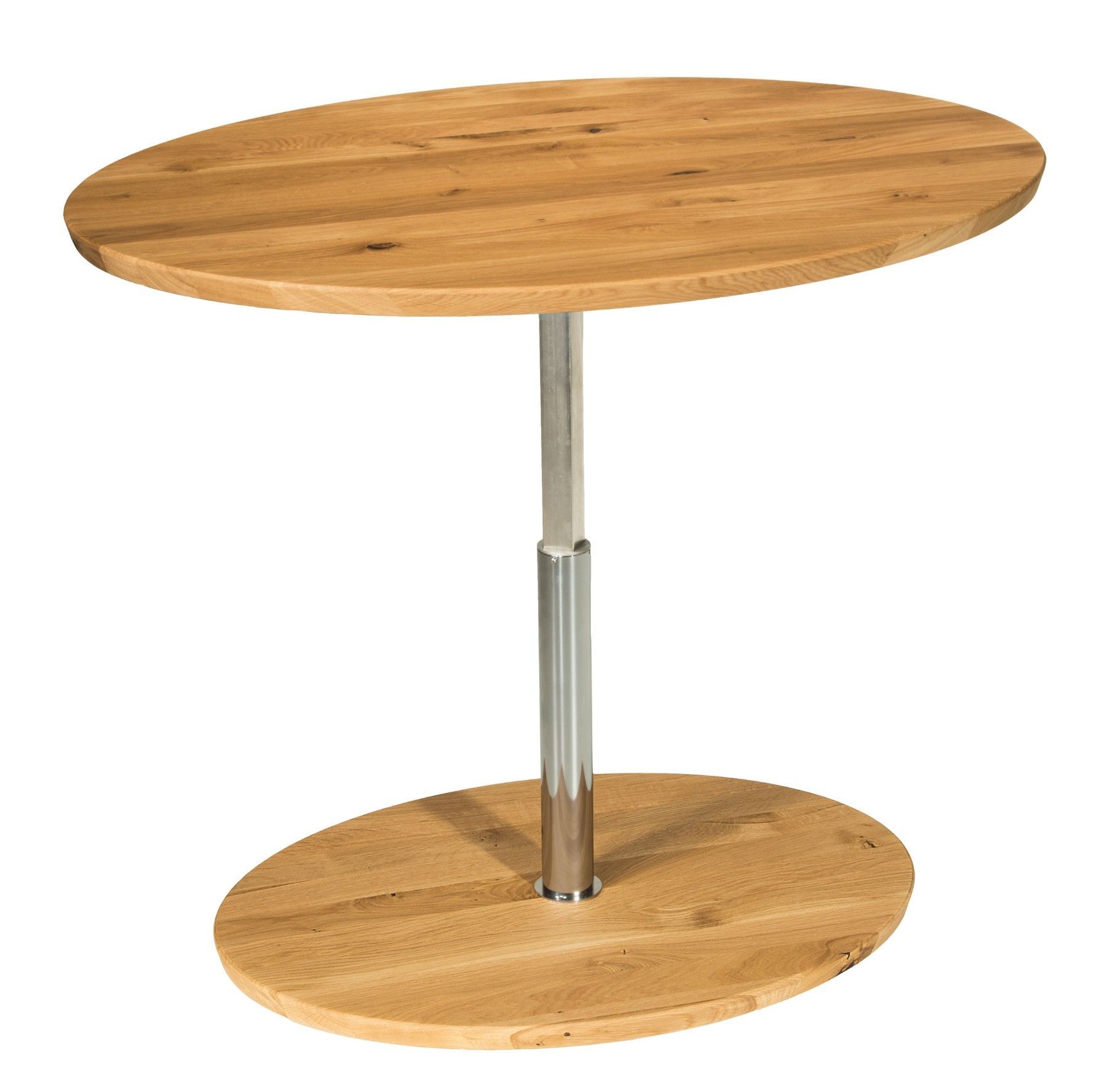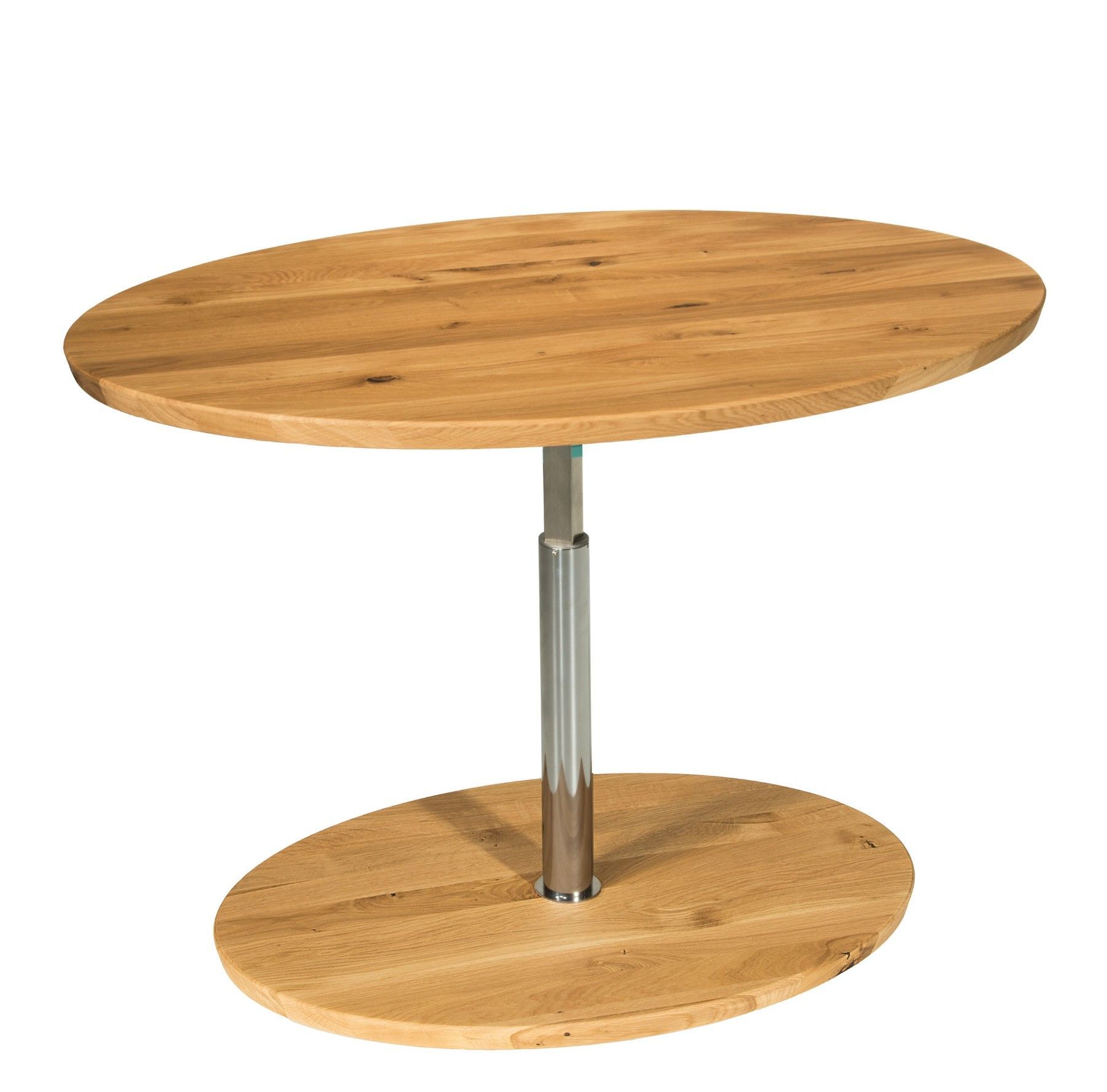 BUC0318 Couchtisch 90x60cm oval Massivholz Liftverstellung 49-78cm mit Rollen