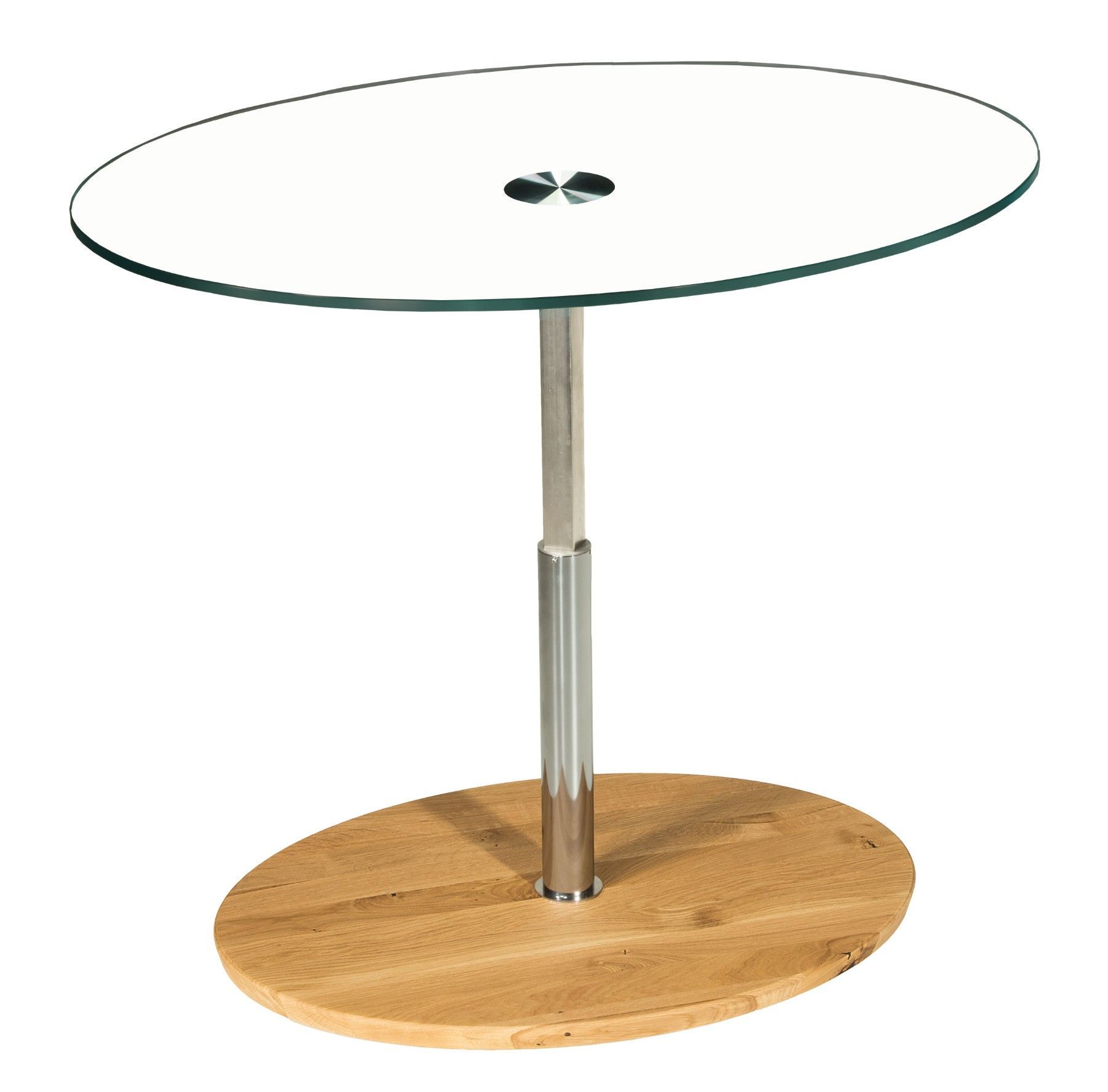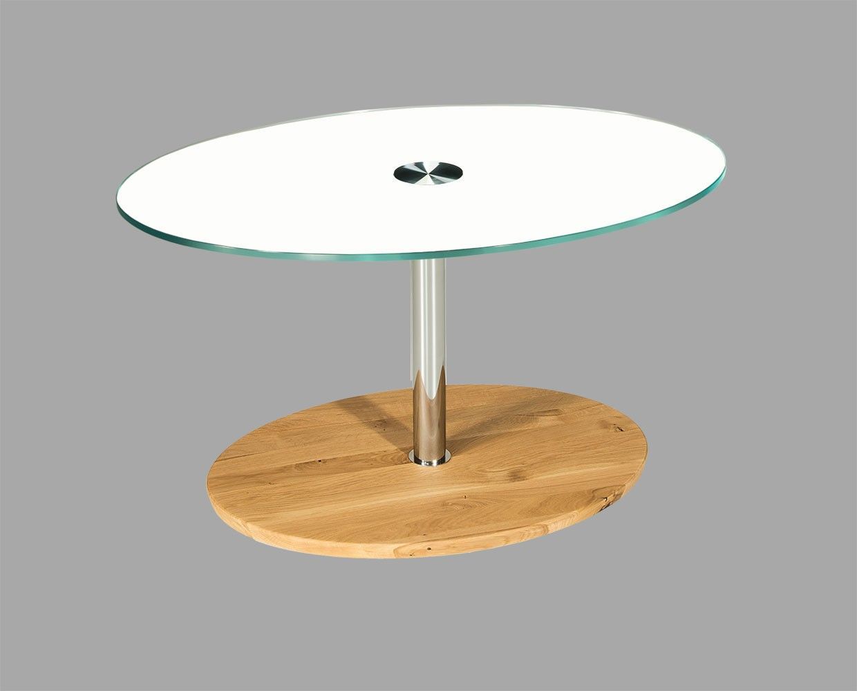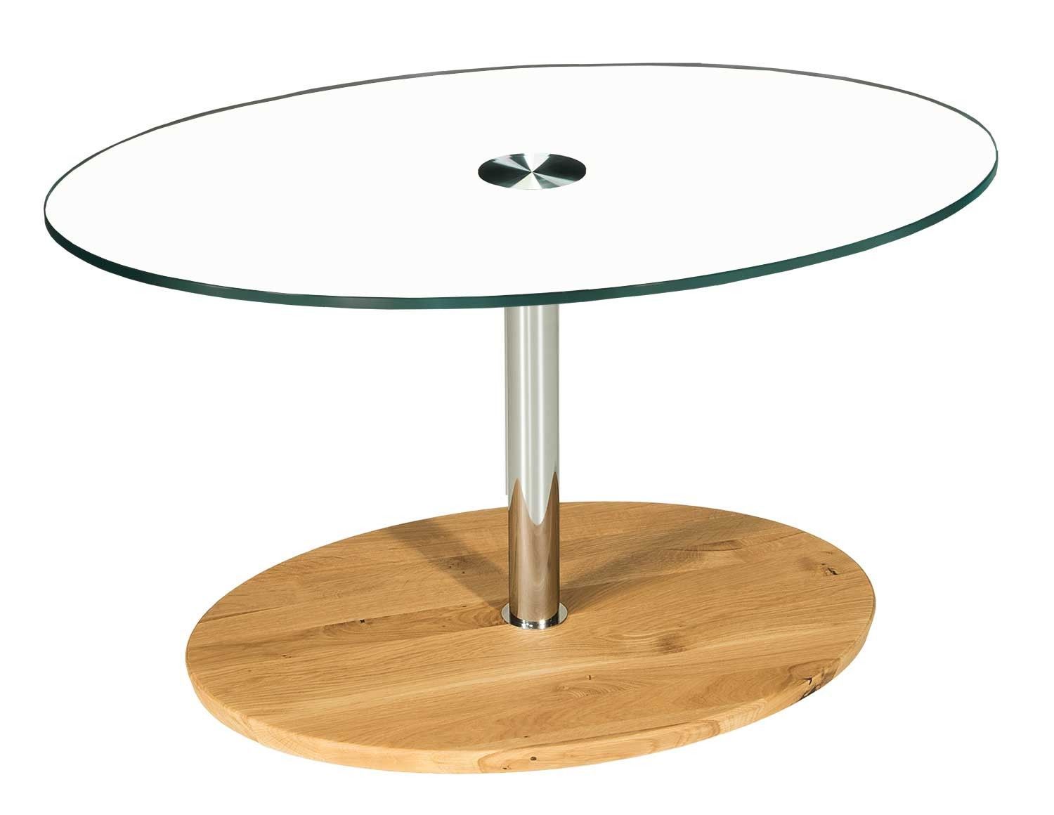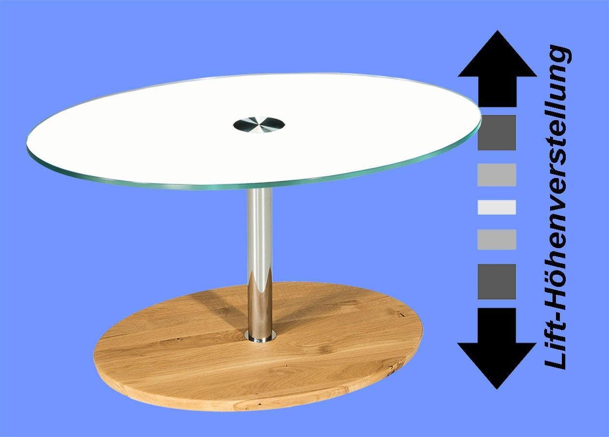 BUC3318 Couchtisch 90x60cm oval 12mm Weißglasplatte Liftverstellung 49-78cm + Rollen