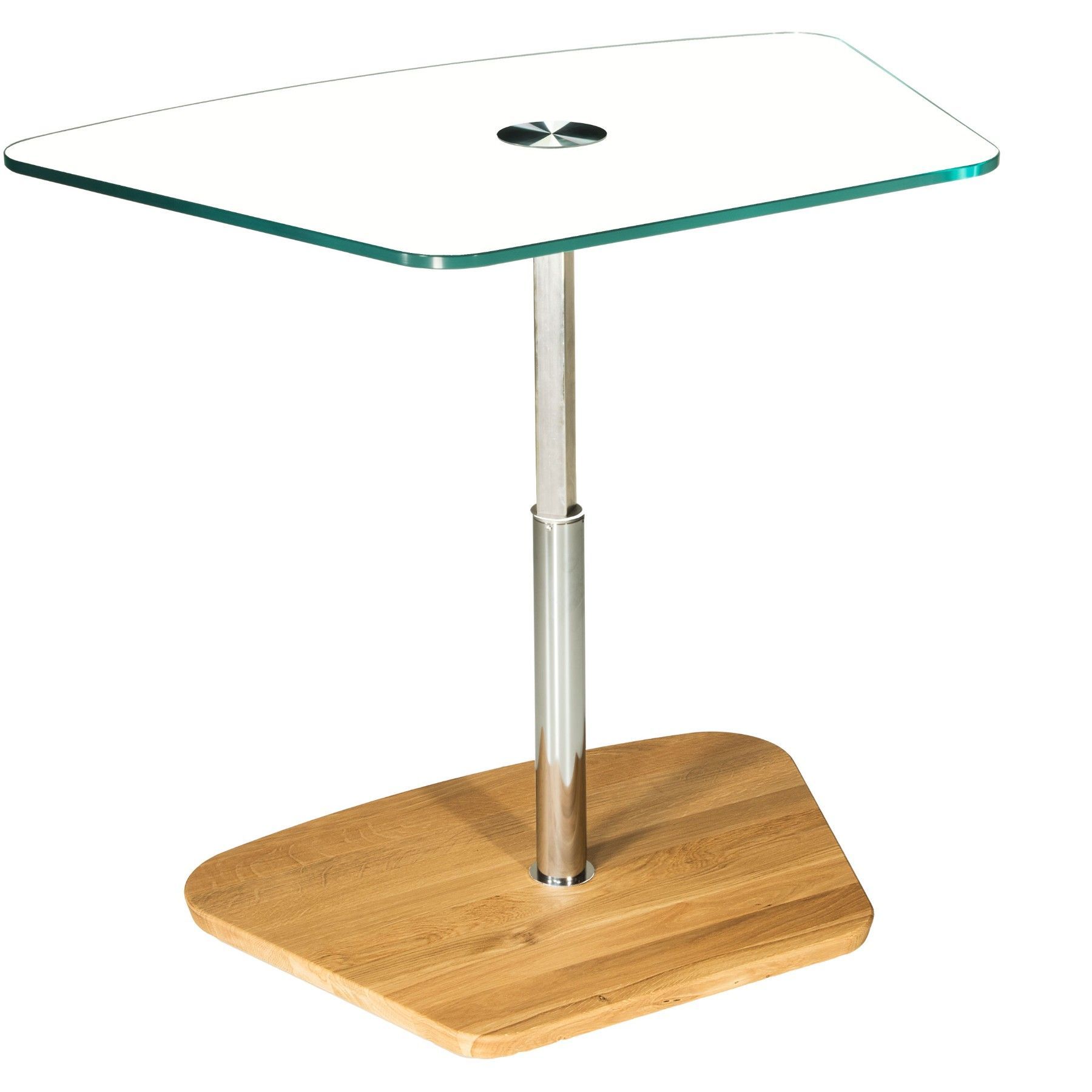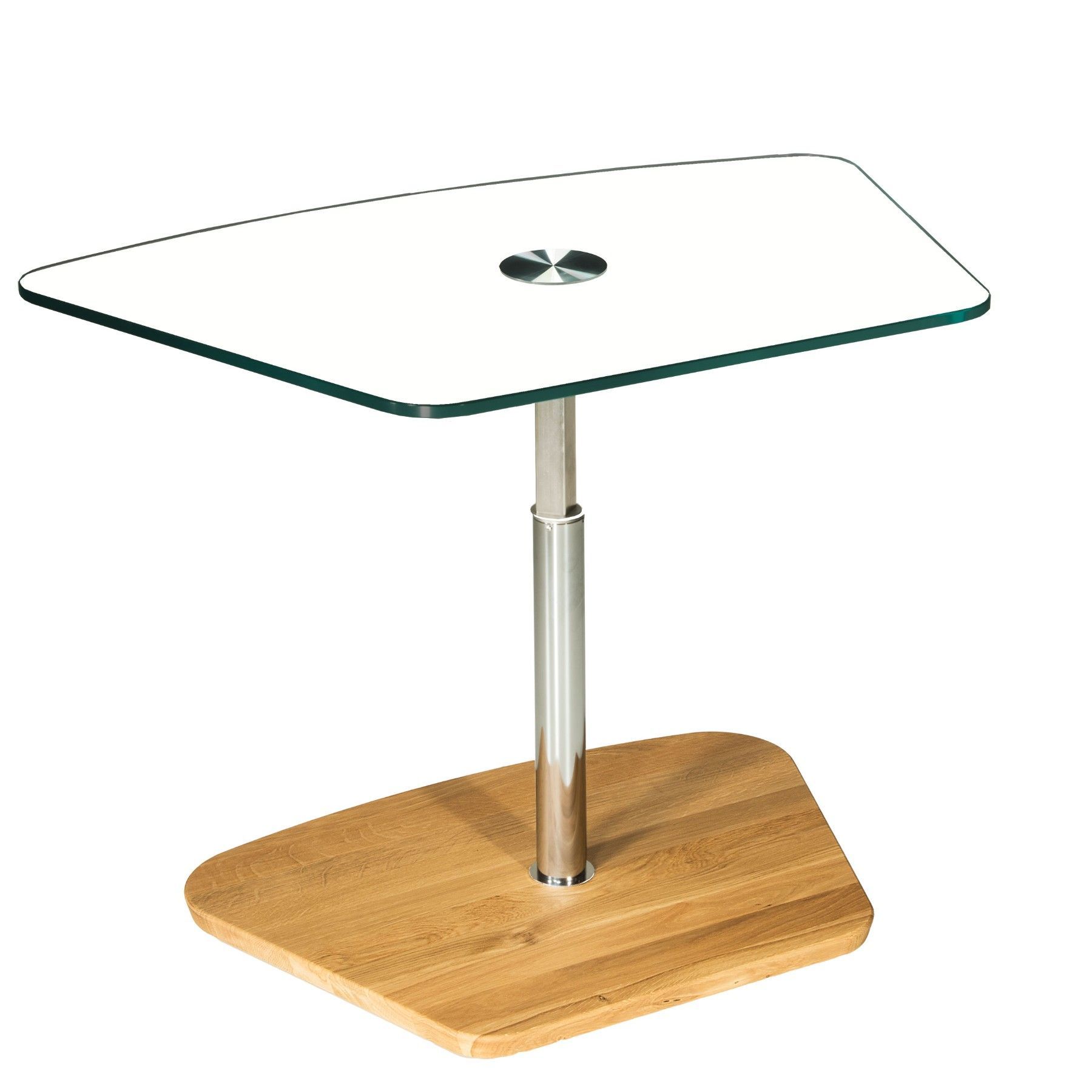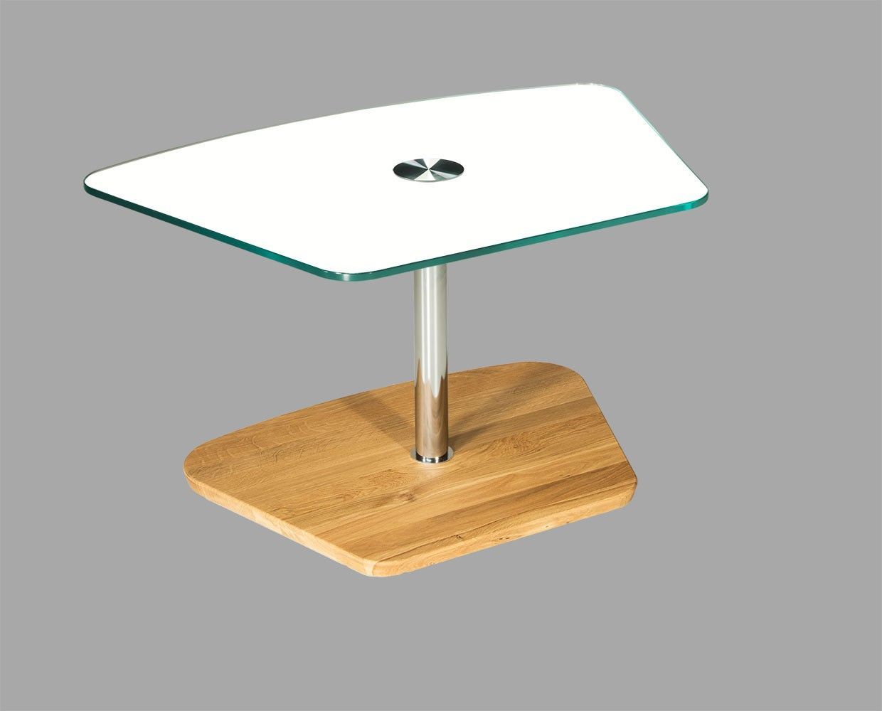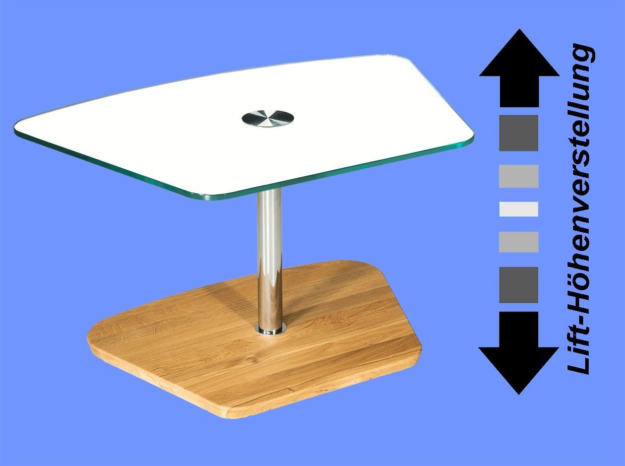 BUC3418 Couchtisch 90x60cm trapezform 12mm Weißglas Liftverstellung 49-78cm + Rollen