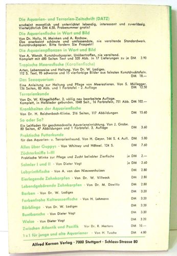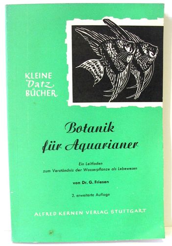 Buch aus der Reihe Kleine Datz Bücher: Botanik für Aquarianer Ein Leitfaden zum Verständnis der Wasserpflanze als Lebewesen 2. erweiterte Auflage von Dr. G. Friesen aus dem Jahr 1953 112 Seiten Format: ca. 11,8 cm x 18 cm x 0,5 cm Zustand: gebraucht, aber insgesamt noch gut erhalten (siehe Fotos) Da