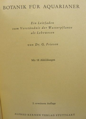 Buch - Botanik für Aquarianer - 2. erweiterte Auflage - Dr. G. Friesen - 1953