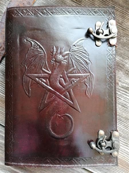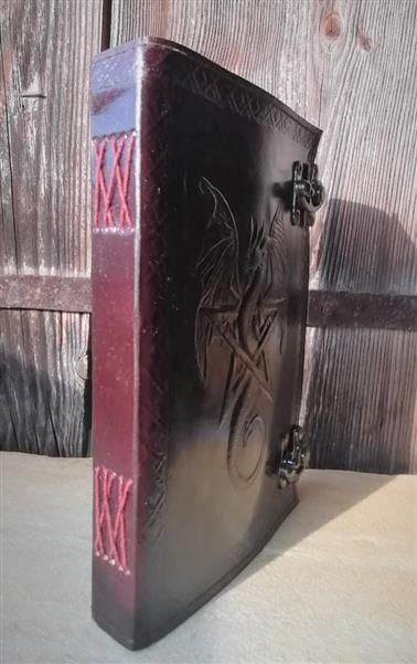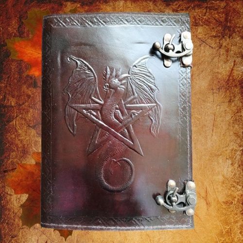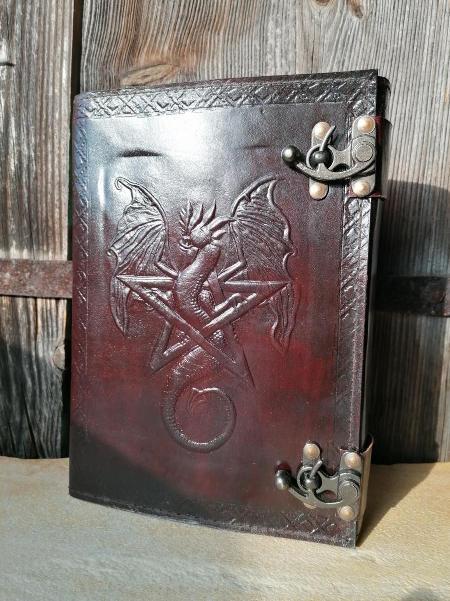 Buch der Schatten Pentagramm DRACHE Leder Messingbeschläge Hexenbuch Tagebuch