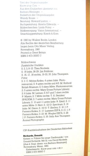 Buch - Katzen Ein Führer für junge Tierfreunde - Ravensburger - gut erhalten