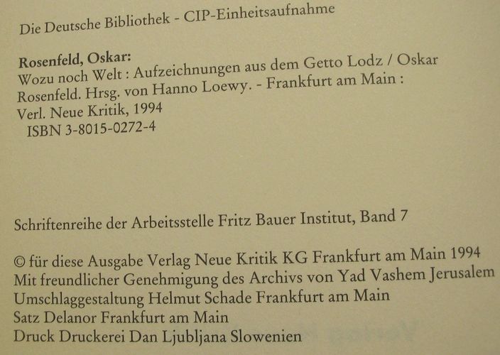 Buch - Wozu noch Welt - Aufzeichnungen aus den Getto Lodz - Oskar Rosenfeld