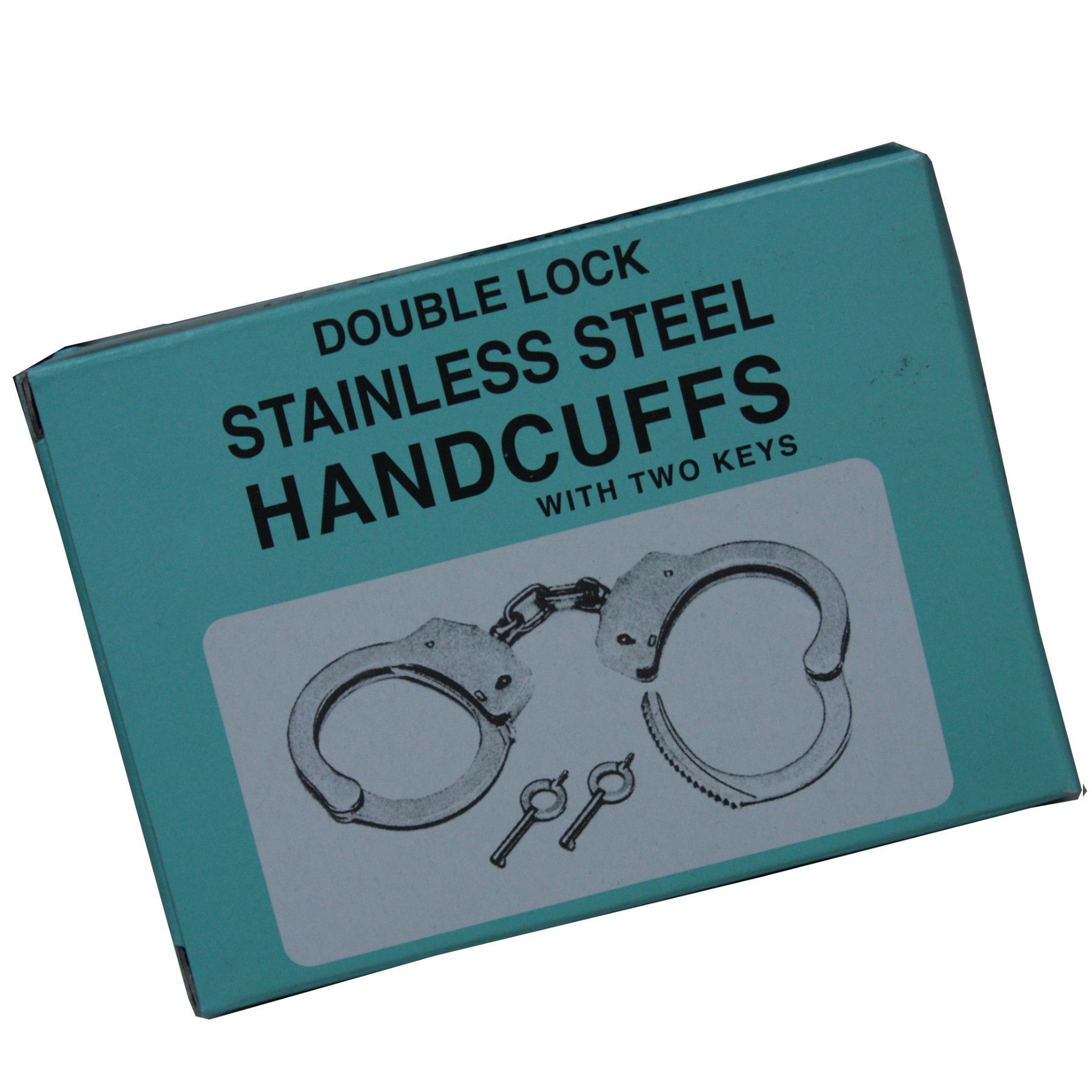 Buchner Edelstahl Handschellen mit Arretierung, Zwischenkette + 2 Schlüssel