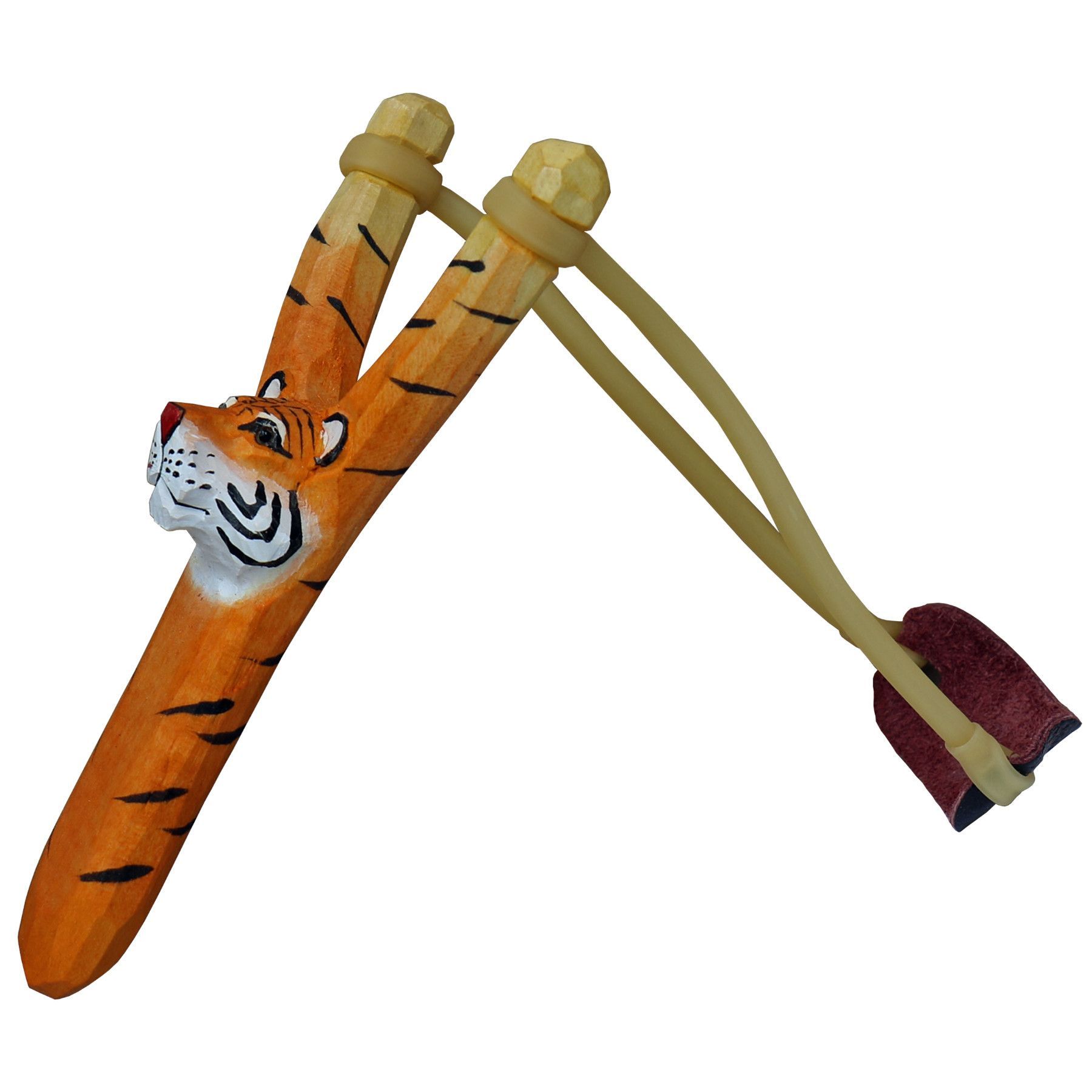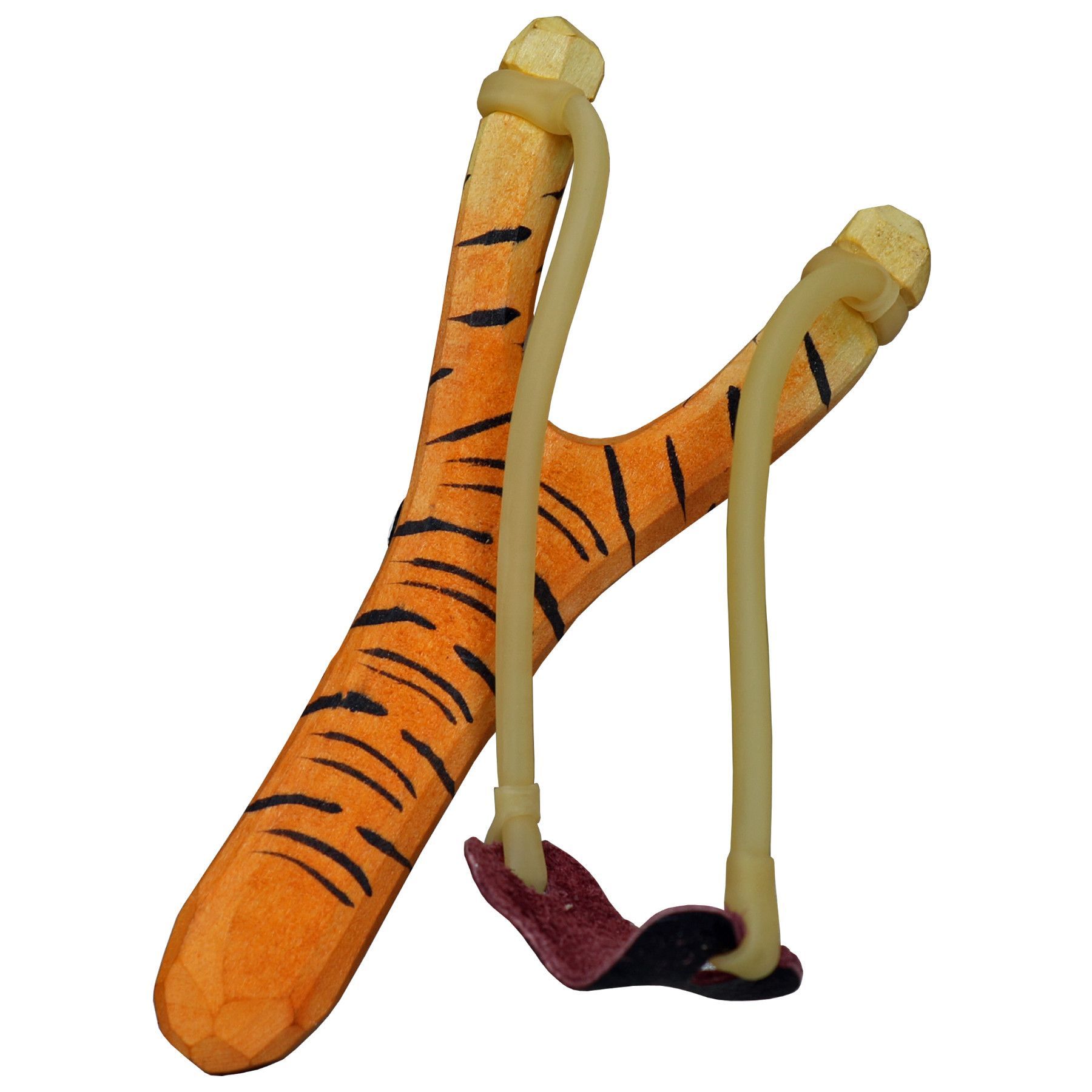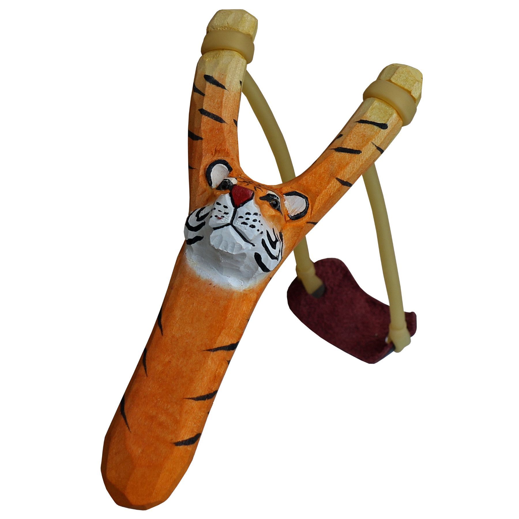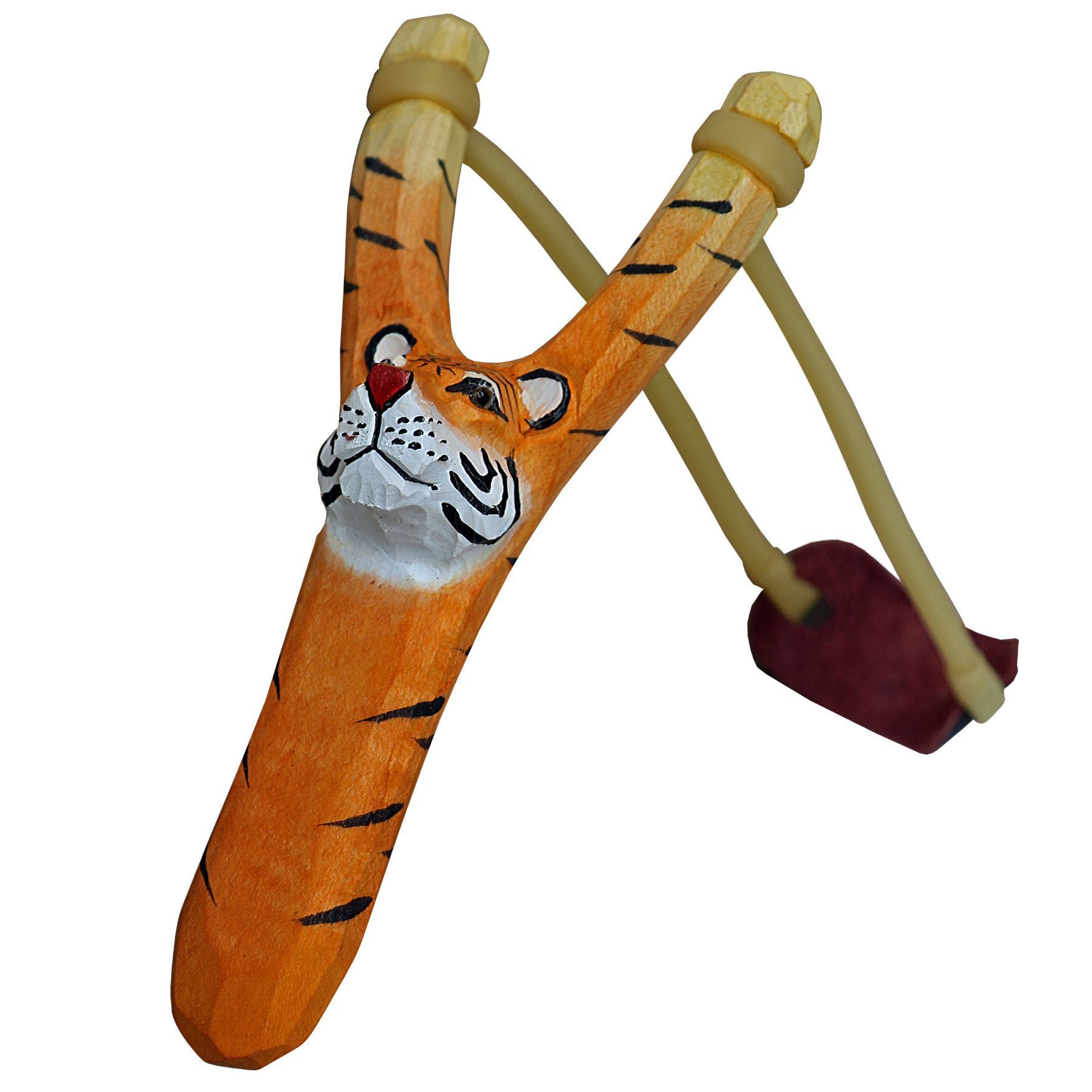 Buchner kleine Holzschleuder mit Motiv Steinschleuder Tiger Zwille mit Tigerkopf