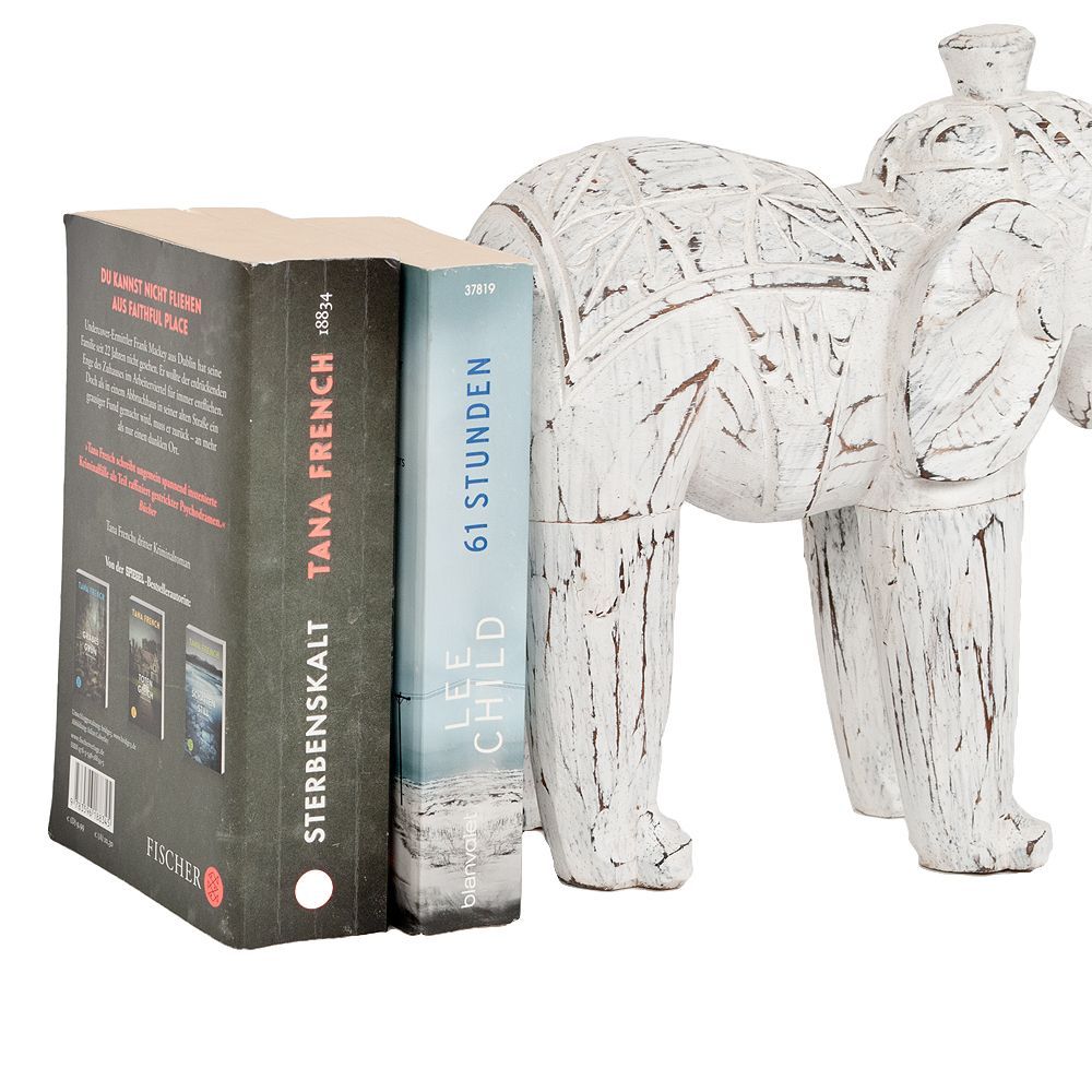 Buchstütze DUMBO-MEDIUM White Wash Albasia Massivholz Stütze Dekofigur