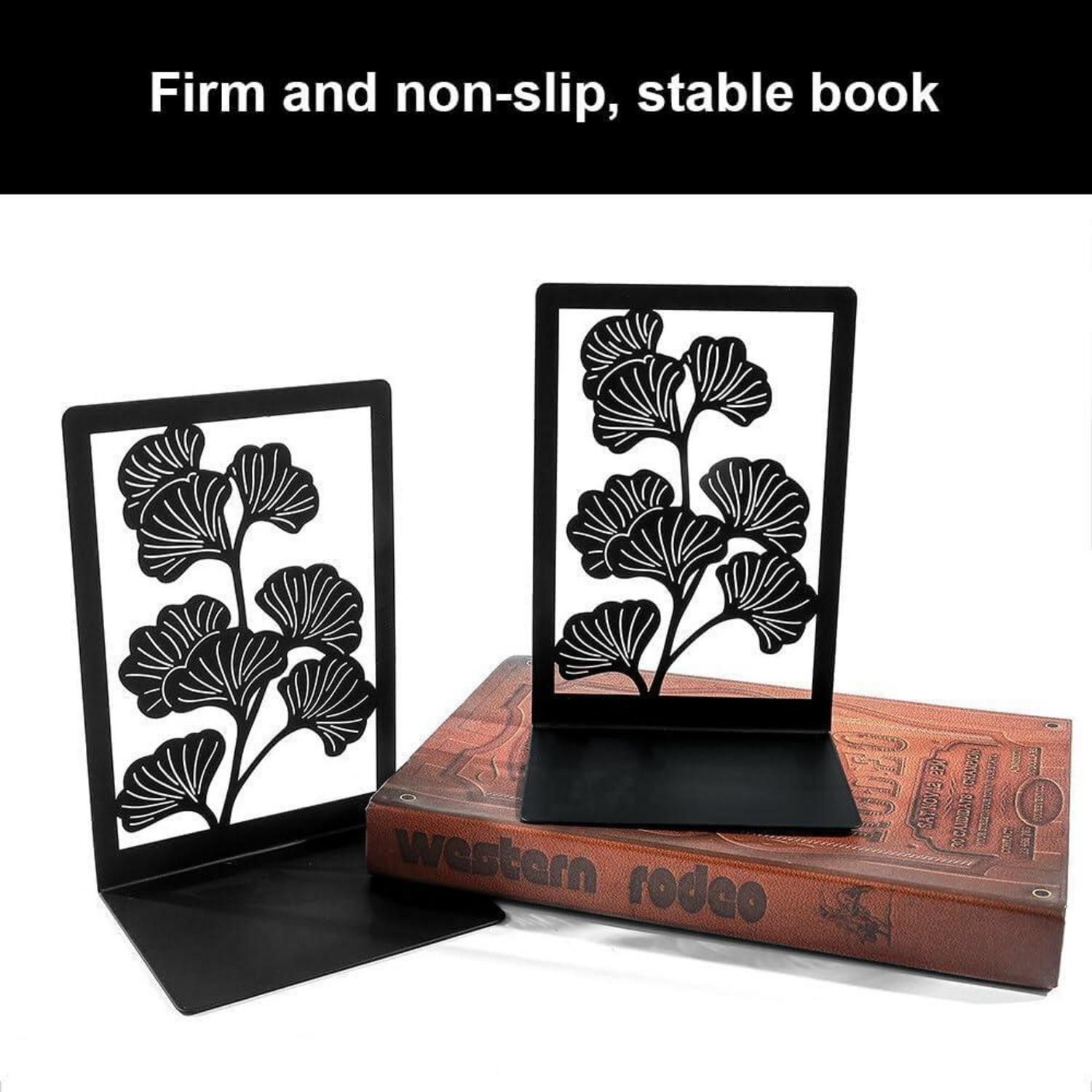 Buchstütze Metall 2 Stück Ginkgo Cut-out Schwarz Bücherregal