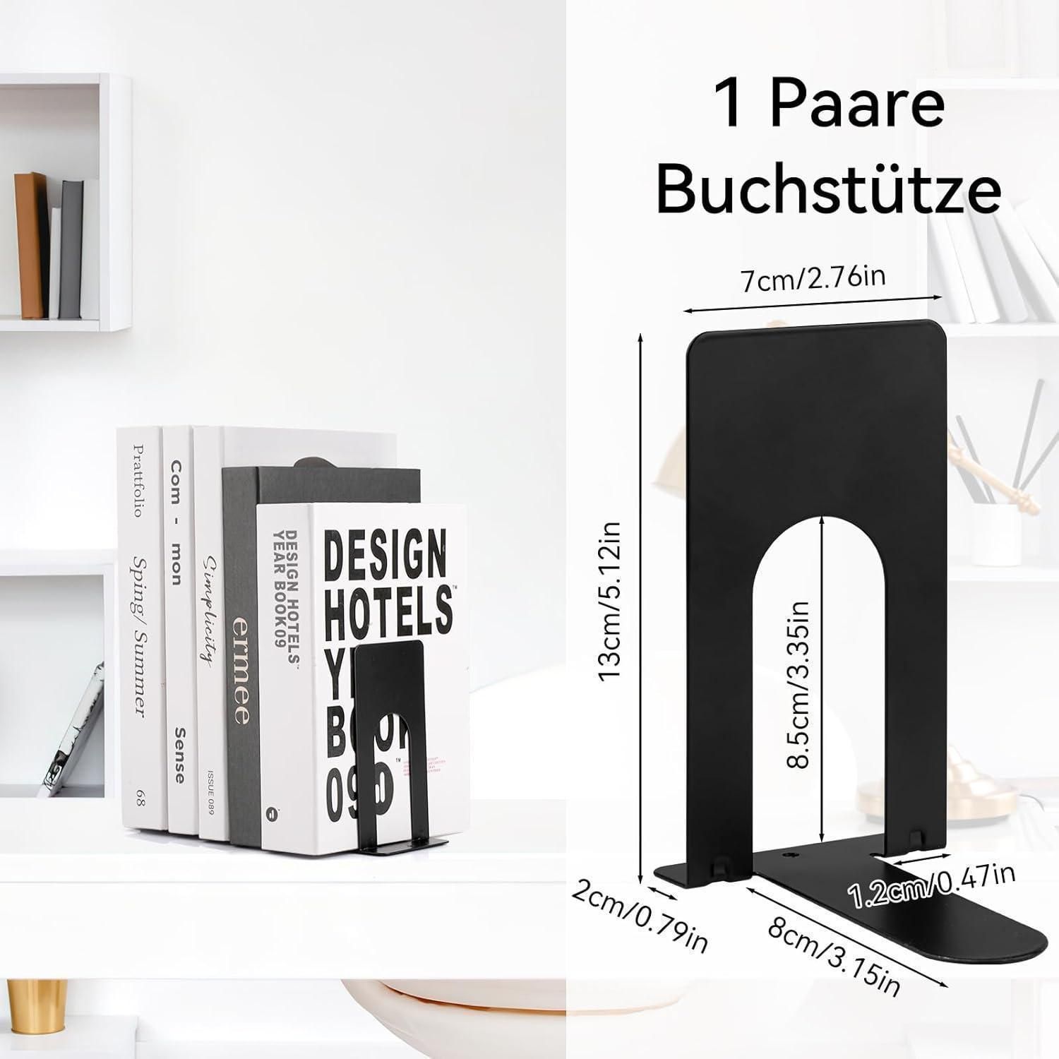 Buchstütze Metall 2er Pack 80x70x130mm Schwarz Bücherhalter Kinder Schule