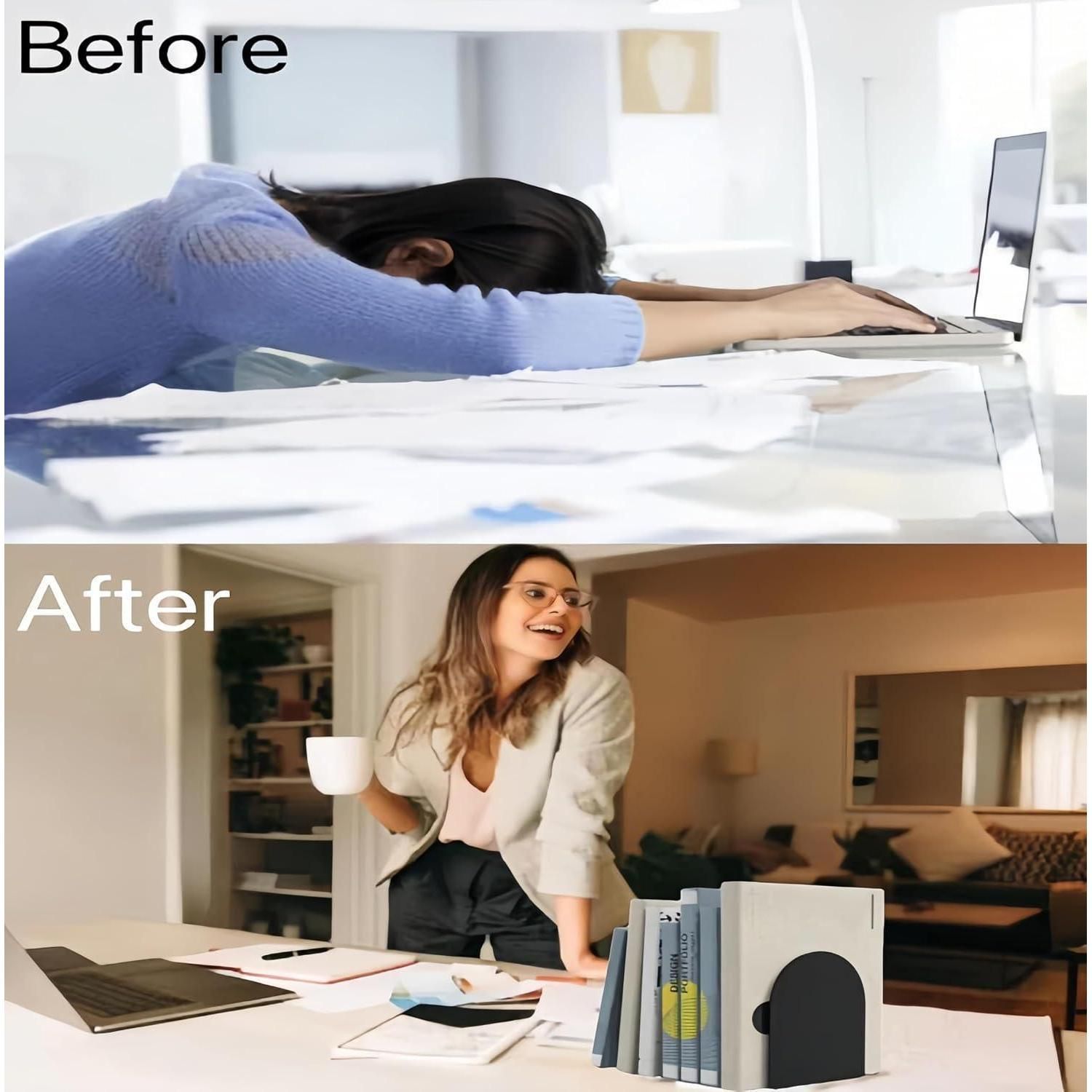 Buchstütze Metall Bücherhalter Bookends Schwarz 4er Set