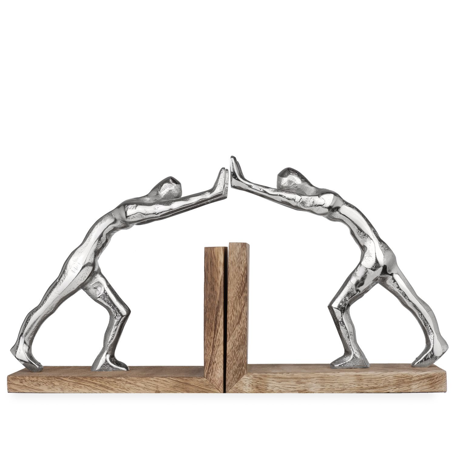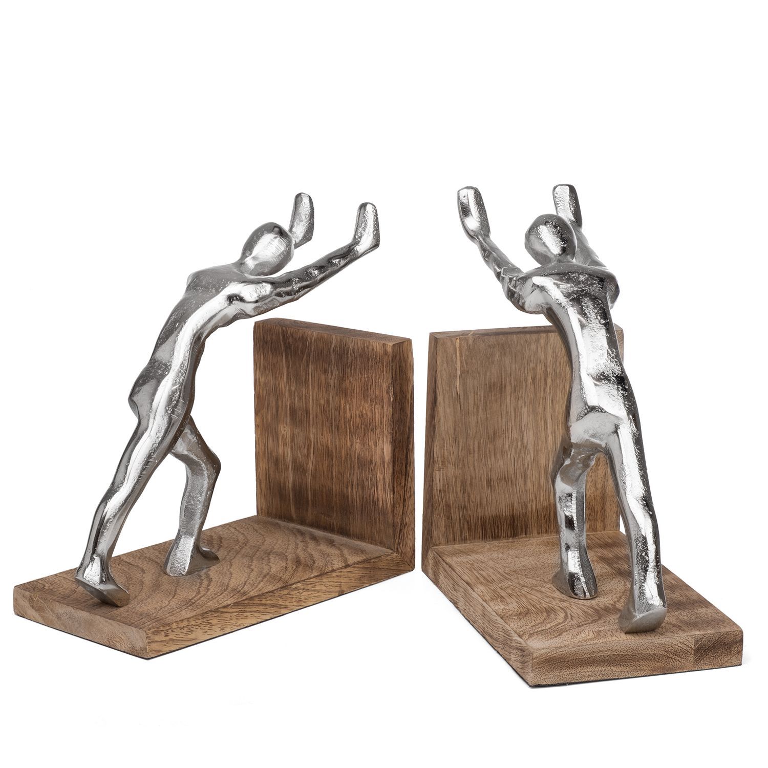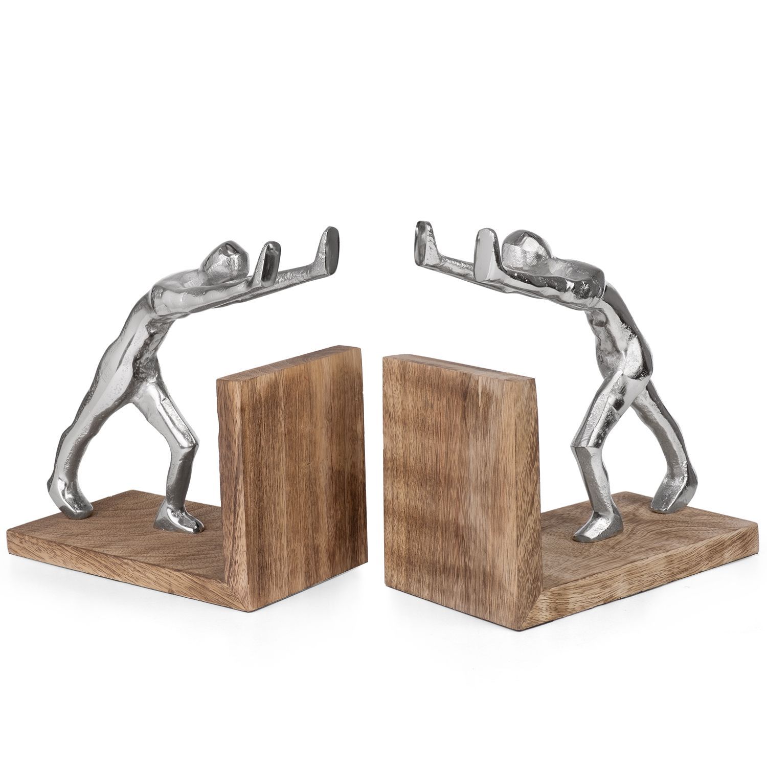 Buchstützen modern aus Aluminium und Mangoholz - 17,5x9,2x18,5 cm - 2er-Set Buchha
