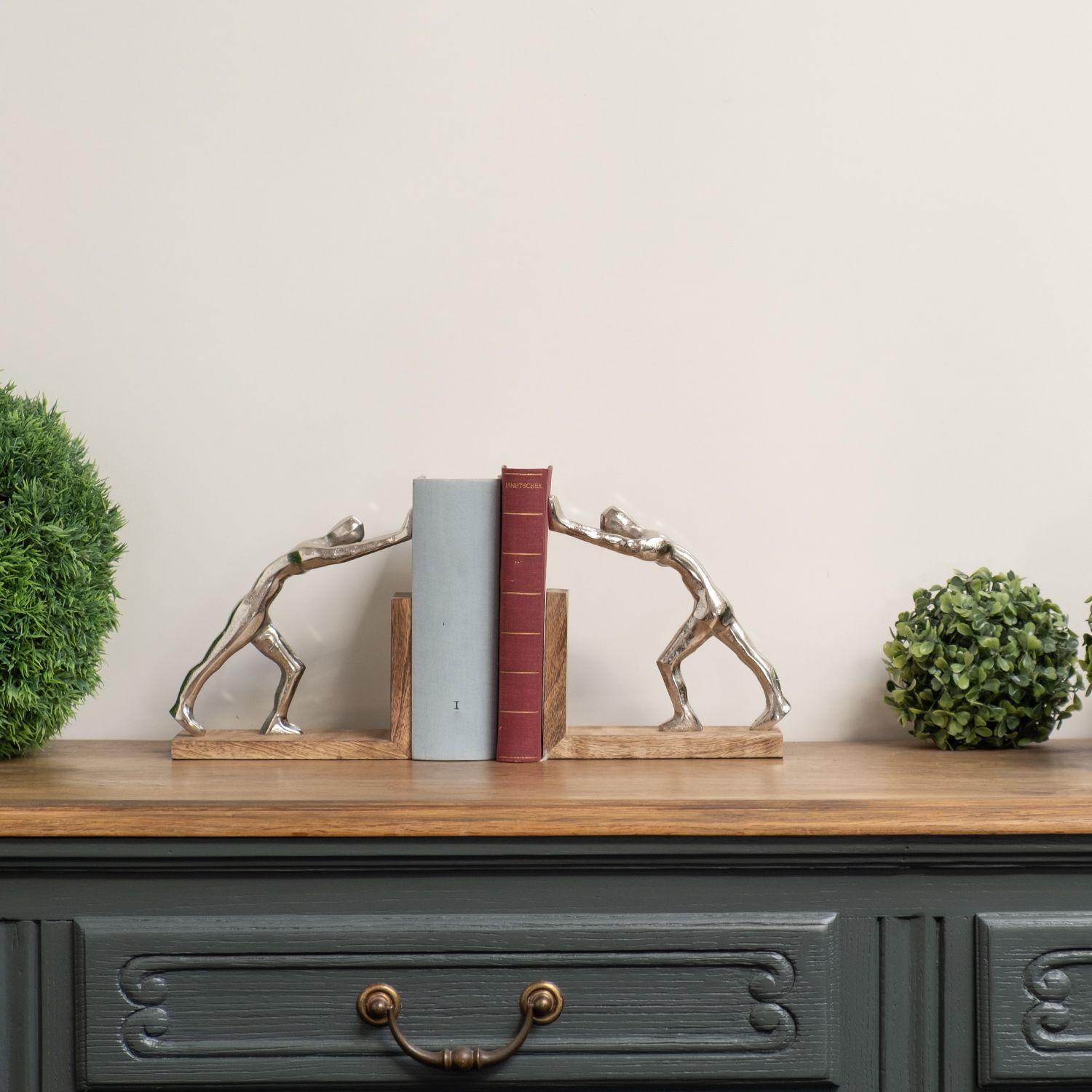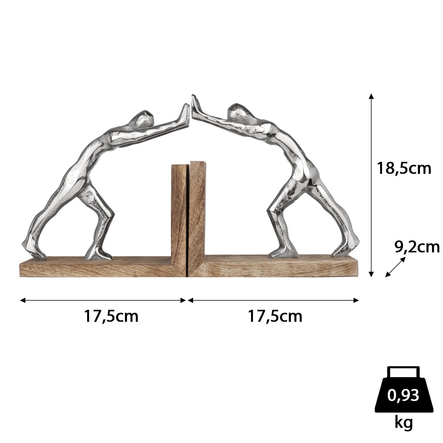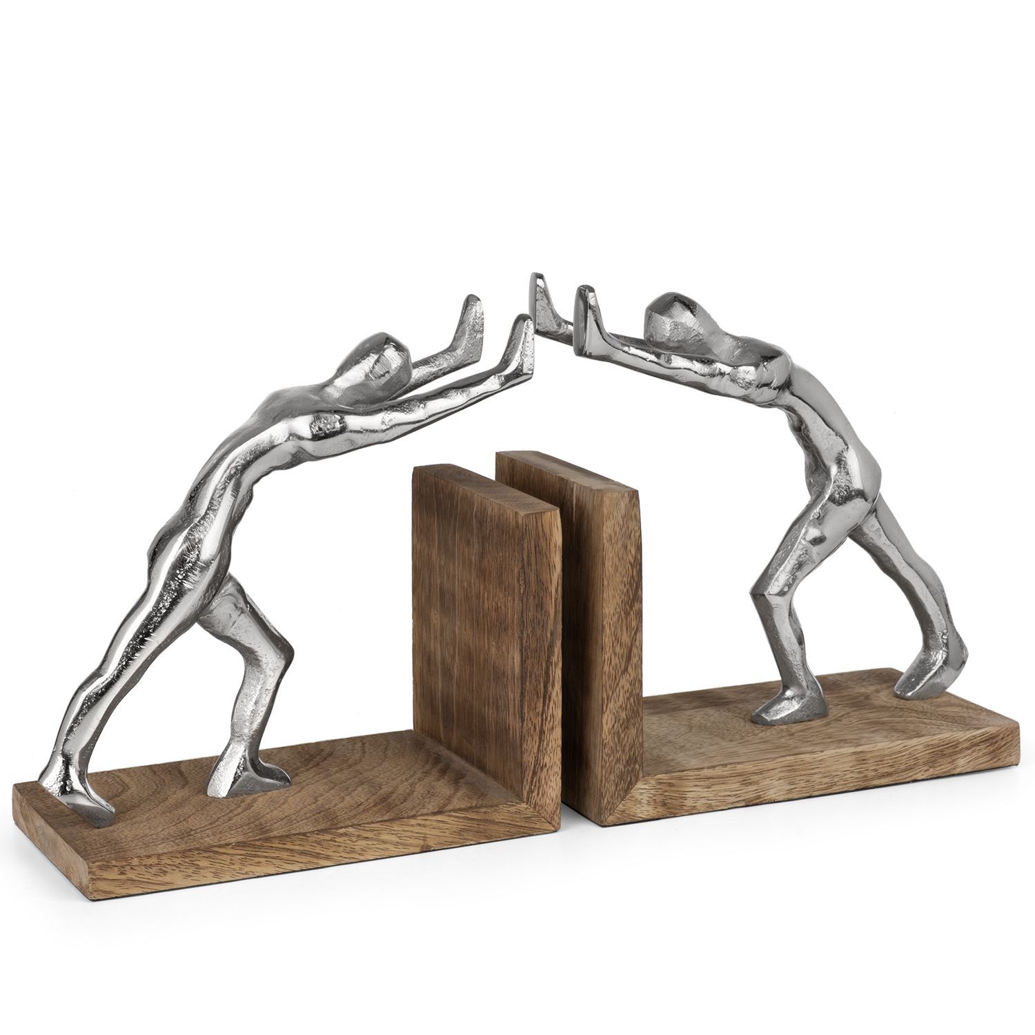 Buchstützen modern aus Aluminium und Mangoholz - 17,5x9,2x18,5 cm - 2er-Set Buchha