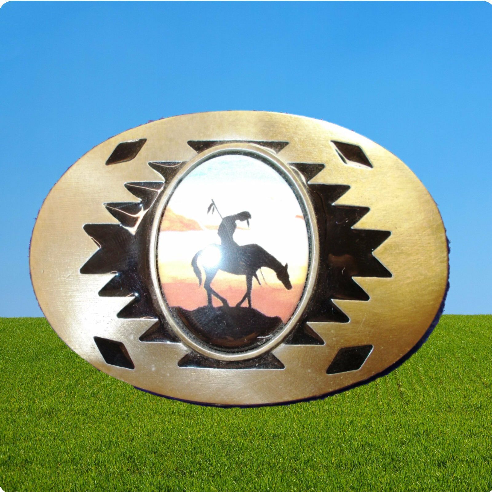 Buckle End of Trail, messingfarben, Gürtelschnalle, Western Buckle