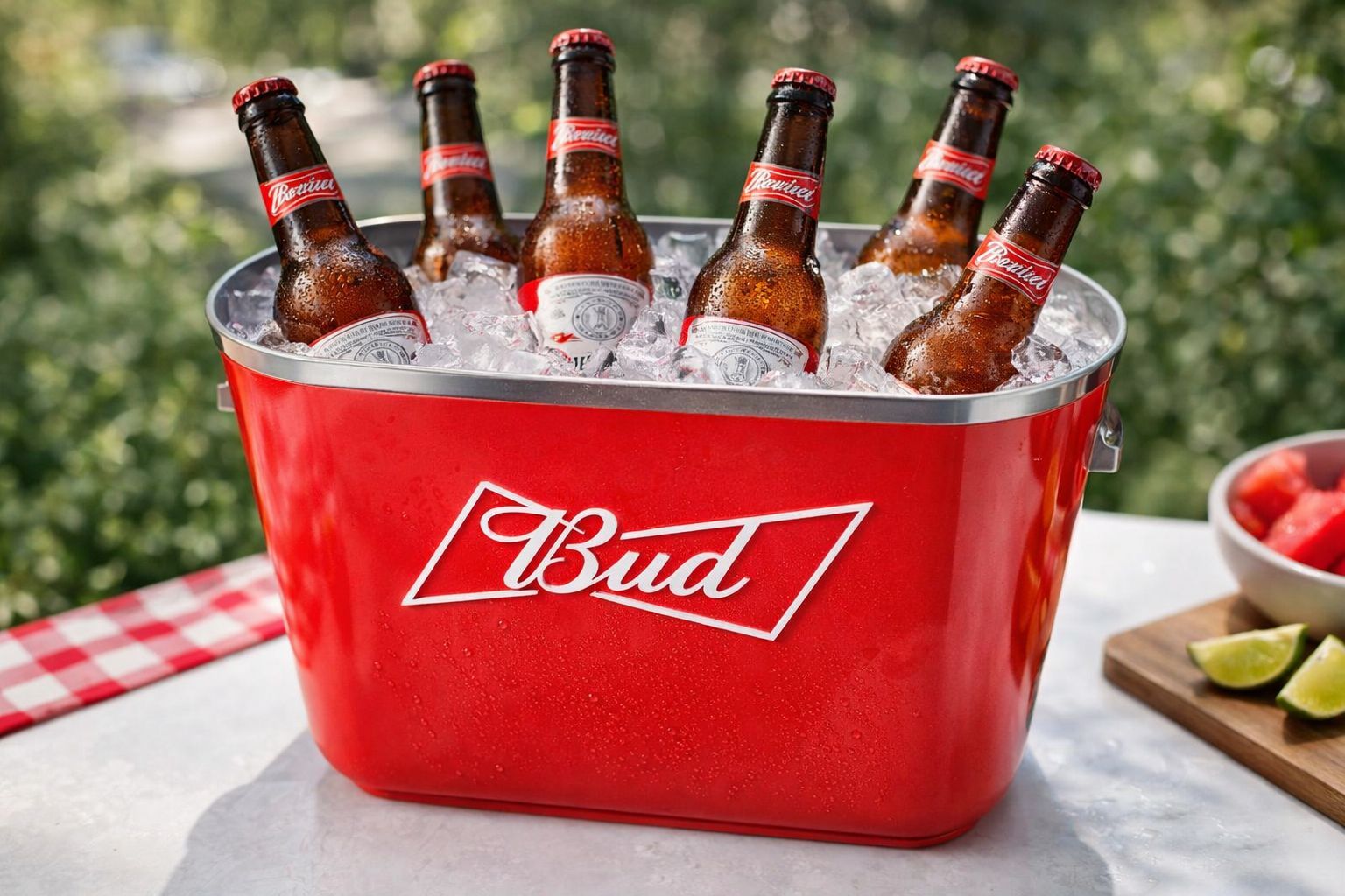 Bud Mini-Eiskübel / Getränkekühler – Budweiser – Rot – Kunststoff – mit 6 Flasc