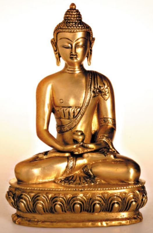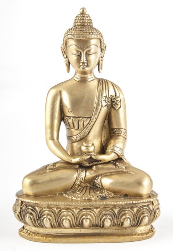 Buddha Amithaba Messing sitzend auf Sockel H: 20 cm 1,6 kg Figur Statue Skulptur