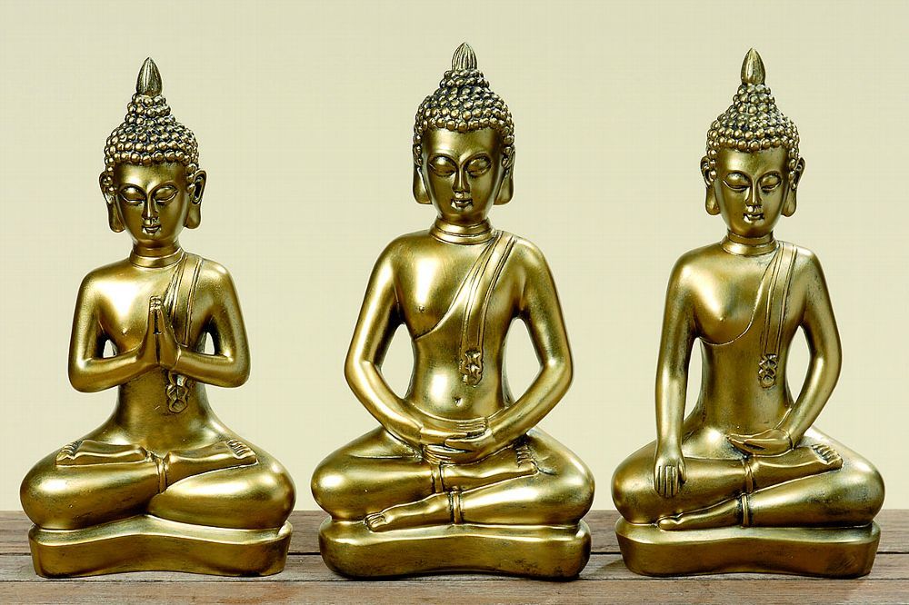 Buddha links im Bild, Buddha mitte im Bild, Buddha rechts im Bild und 3er Set