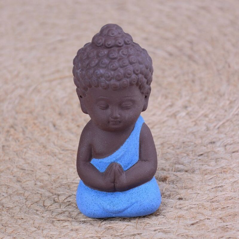 Buddha Figur sitzend Keramik 8 cm braun-blau Mönch Skulptur Glücksbringer Deko