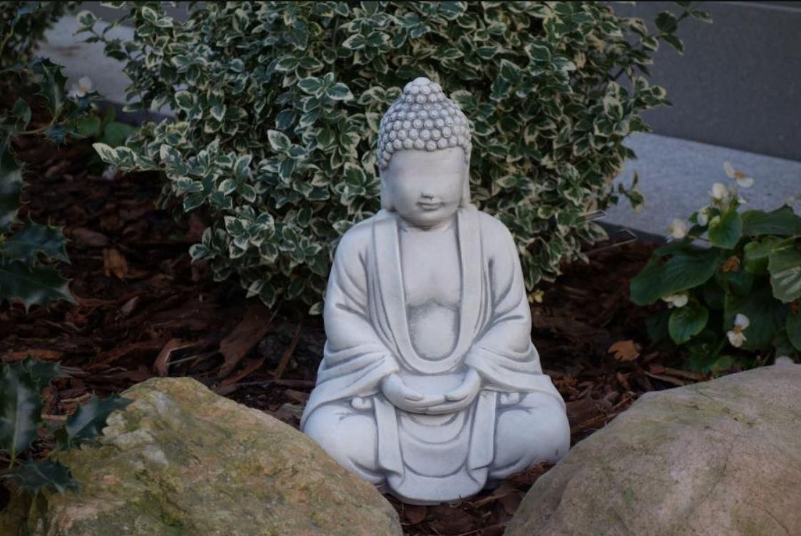 Buddha Skulptur in Steinoptik. Große Skulptur für Garten und Wohnbereich 34cm